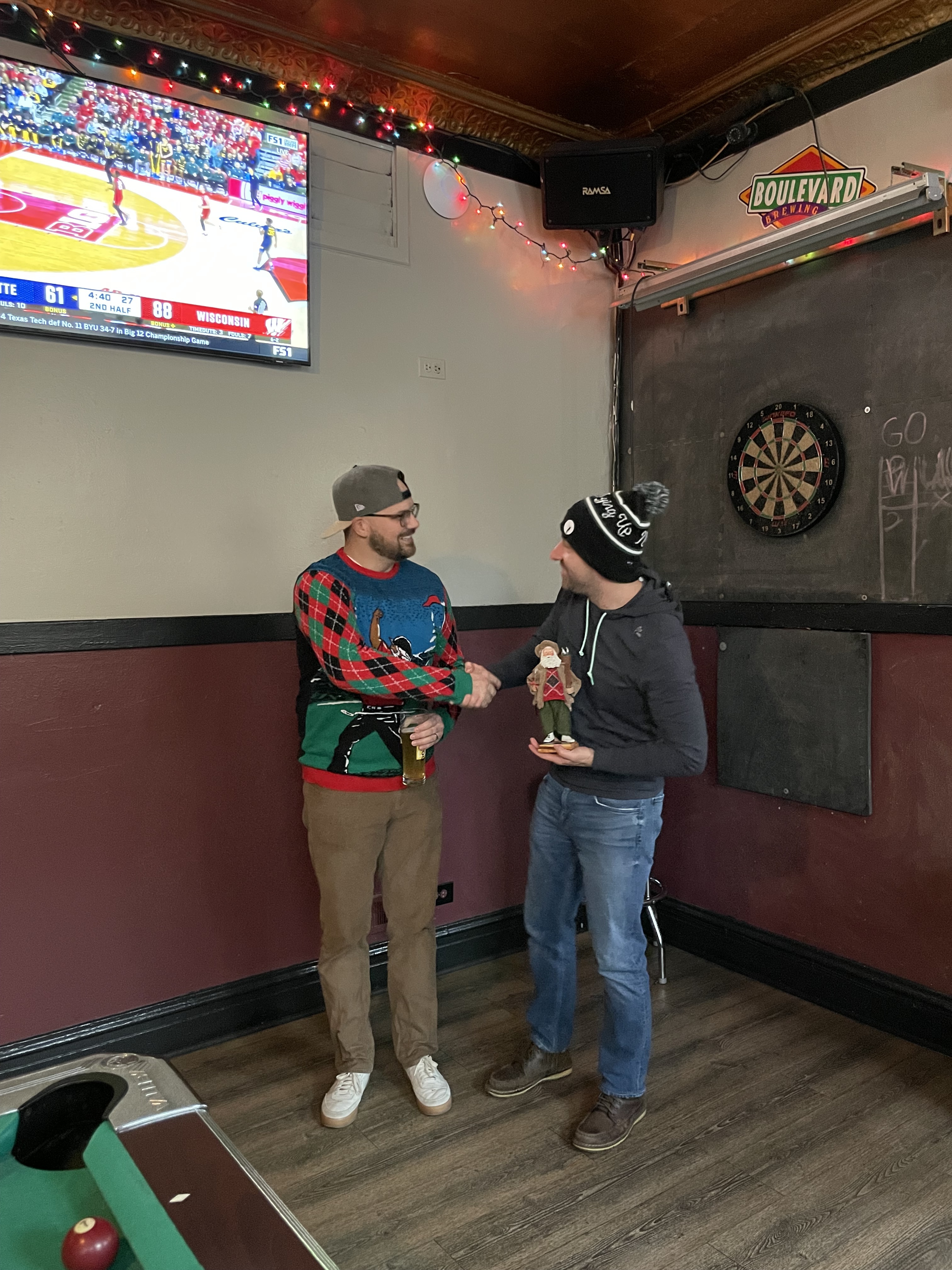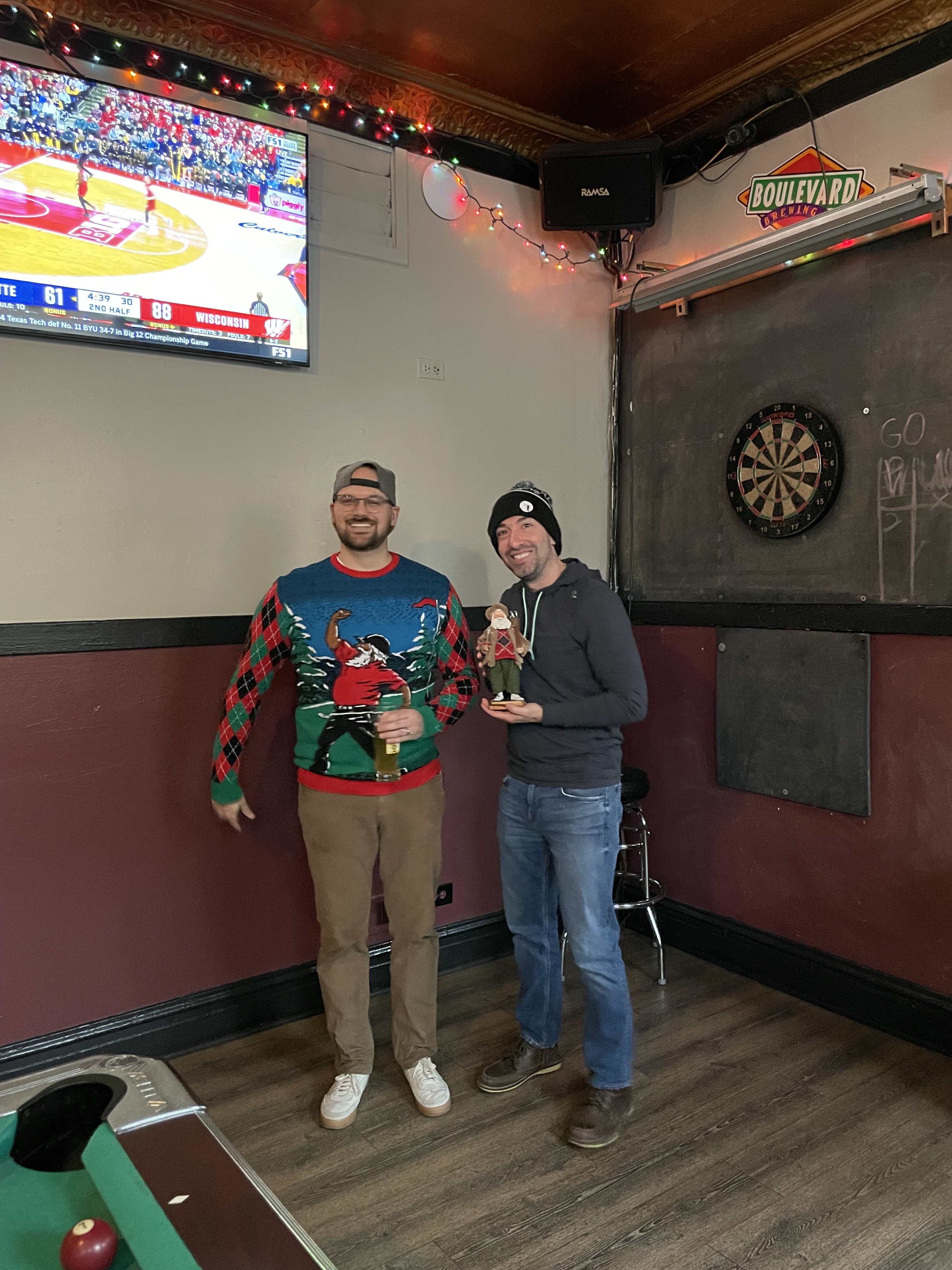 Extras: Bring along a beverage to share so we can all keep warm, wear a holiday sweater/outfit, and head to Toonz for some drinks after the round.
