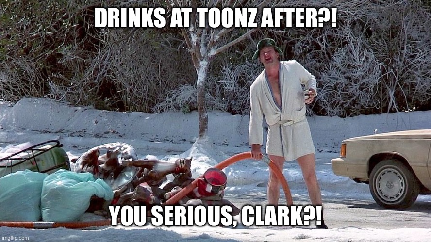 Therefore: let’s plan on 12 pm at Toonz. Wear your festive holiday garb and we’ll have a few drinks. Please consider donating to the Greater Chicago Food Depository. Chicago winters are hell for folks experiencing homelessness and GCFD provides for those looking for a bite to eat.