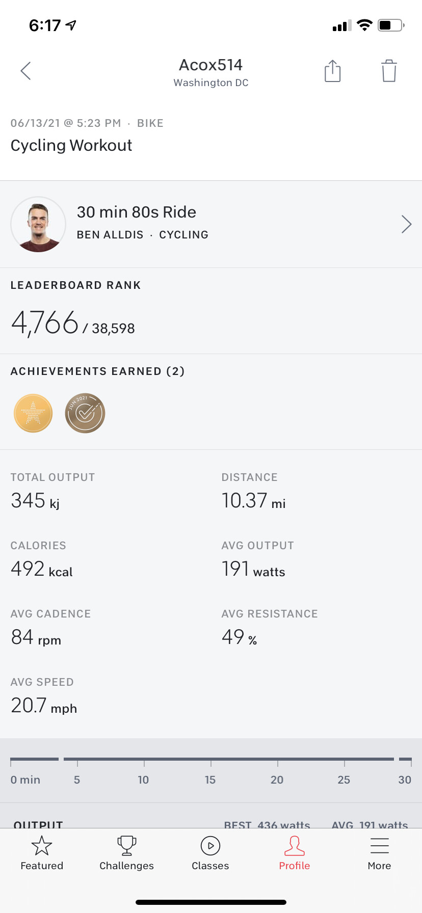 On a nice little roll after feeling like I hit a wall a couple weeks ago. I just kept cranking the resistance up and was feeling good, and kept adding. Noticed I was on a good pace around halfway and decided to go after it.