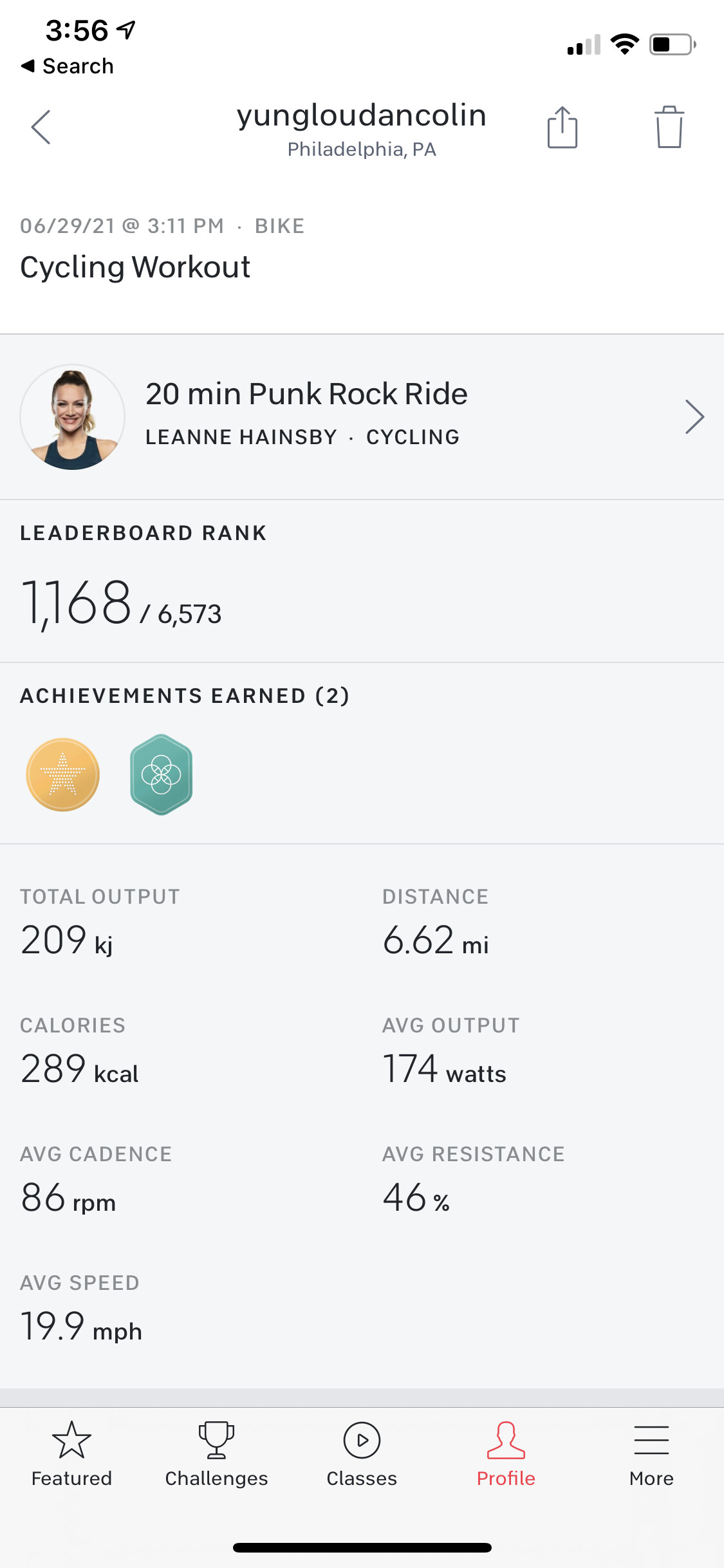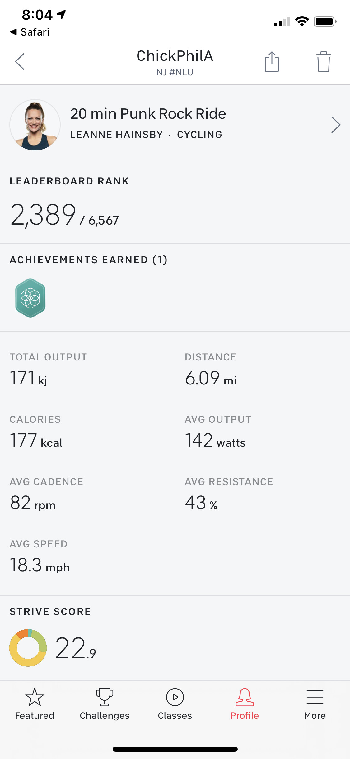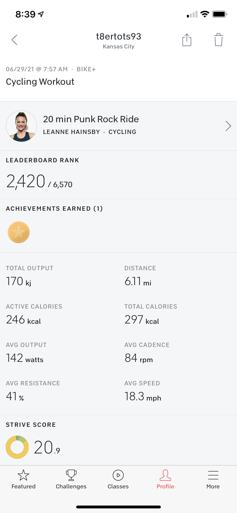Kinda cool seeing these older ride like this one with only 6,500 previous rides. For comparison, last week’s Kendall ride from earlier this year had 167,000 rides. I think Kendall is pretty popular instructor choice, but it shows the growth of Peloton the last couple of years. I like taking older rides like this one.