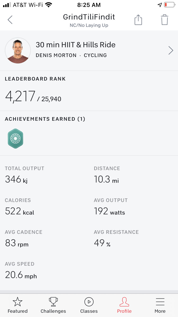 Got the weekly ride in—tough to ignore the mind#!#^ of not being able to get near PRs these days, but in the plus side my streak of not missing a day working with the Peloton this year is still alive!
