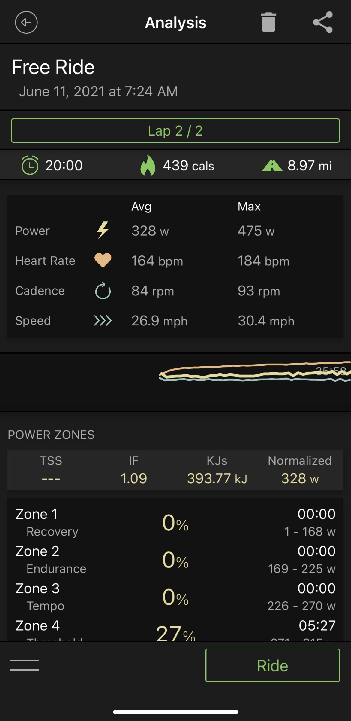Last re-test, have done the build your powerzones program since, two classes left before a new test Monday. My bike definitely overstates power/speed/distance/cals, but I’m using it directionally