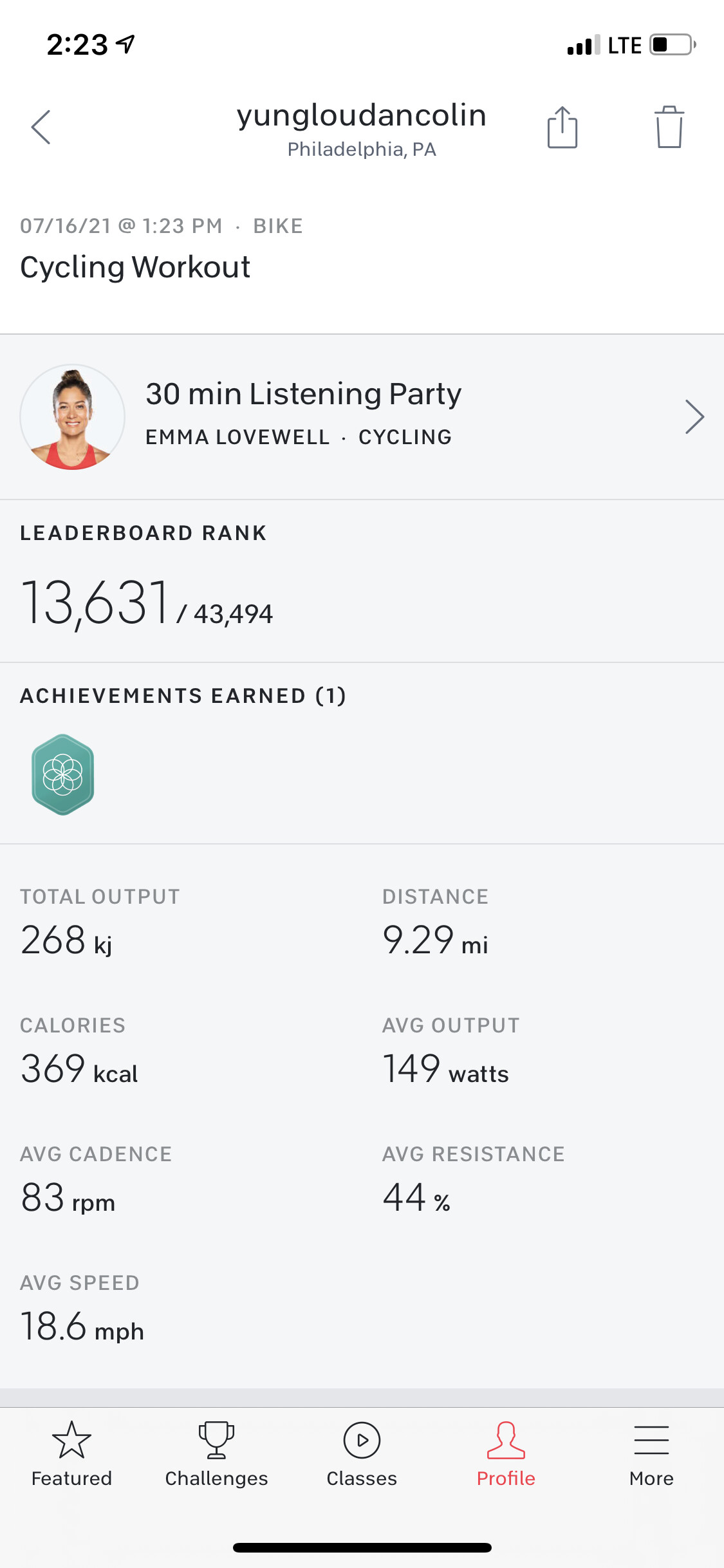 I haven’t done a peloton ride since June 1. Too hard to sit inside when I can do activity outside.