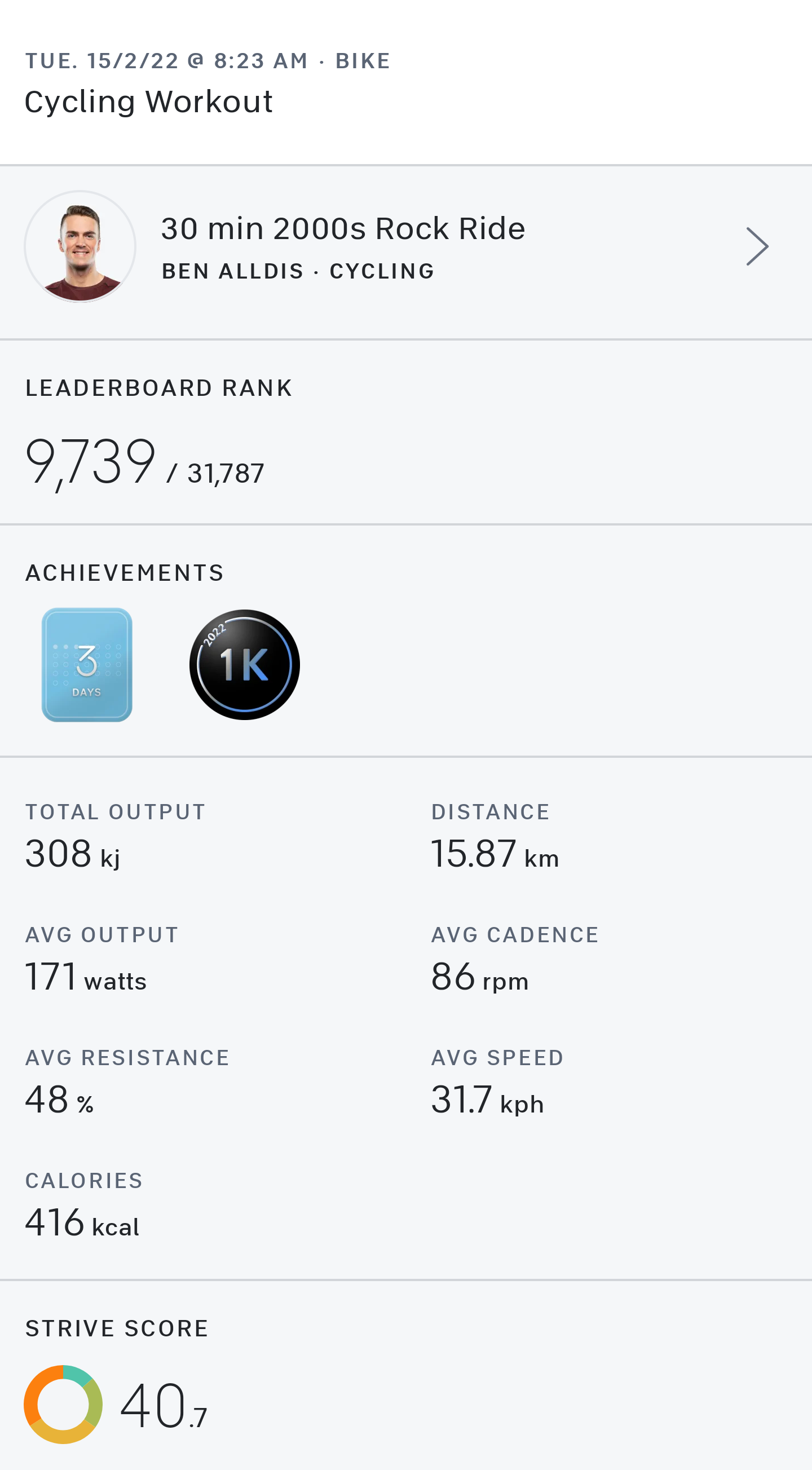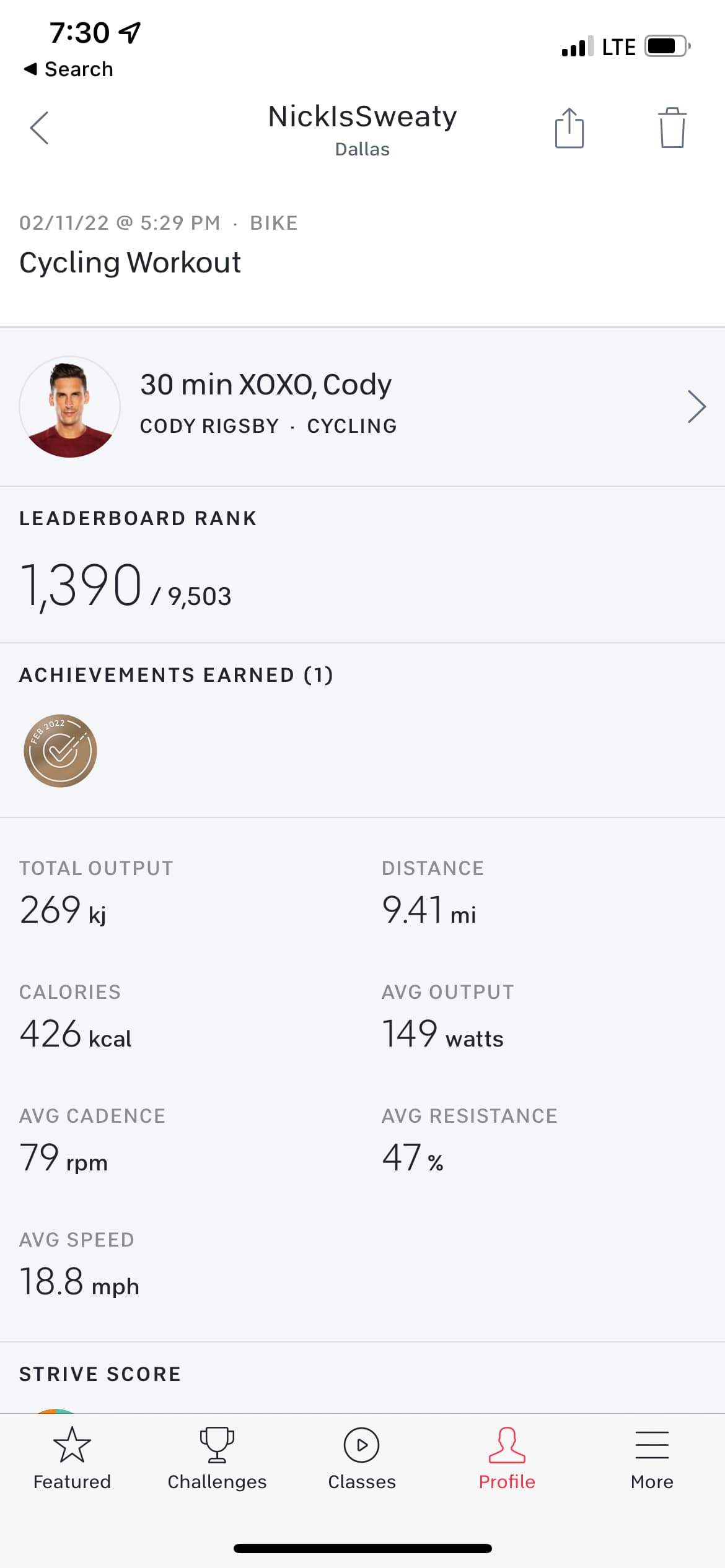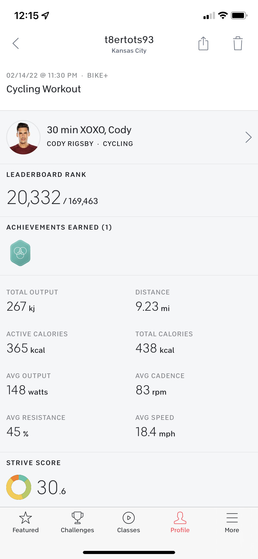 First ride back after having COVID last week and my first ever live ride. I’ll be honest, it was a struggle but it was probably the best ride to do because you get a little break in the middle while Cody gives love advice.