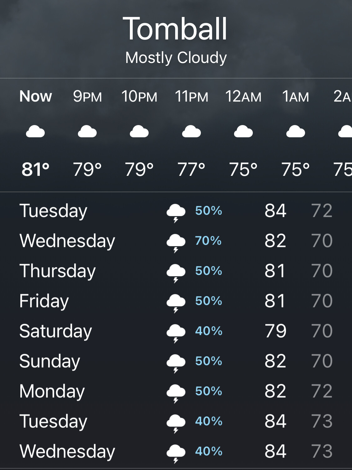 Yikes. Hoping the weather guis are wrong on that one. I can handle a few showers, but not a slosh fest.