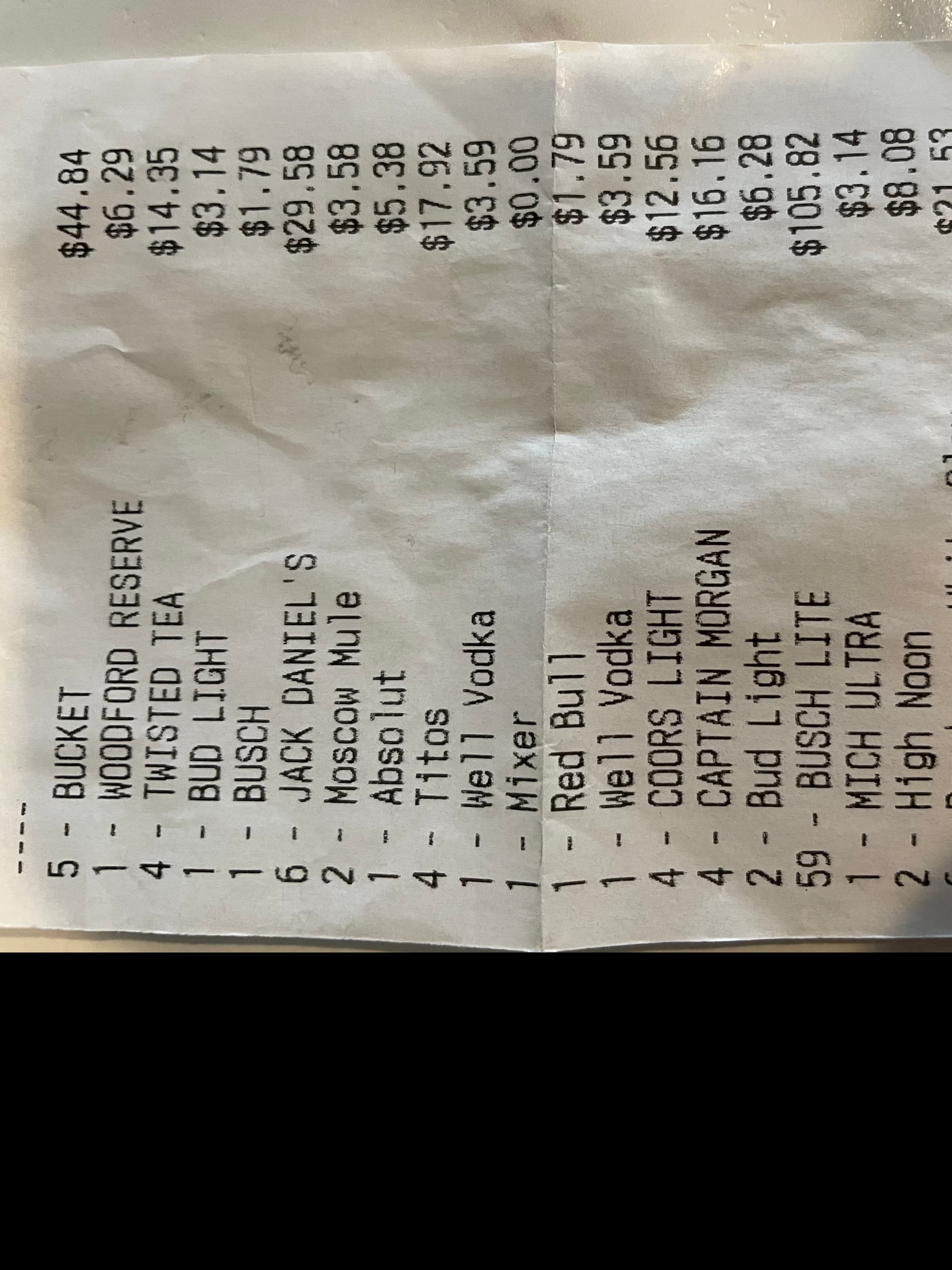I want to know where in the sequence of 10+ drinks a single Mich Ultra was ordered. First beer of the night for someone before they caved, or late session beer when someone already had 1500 calories of other drinks first?
