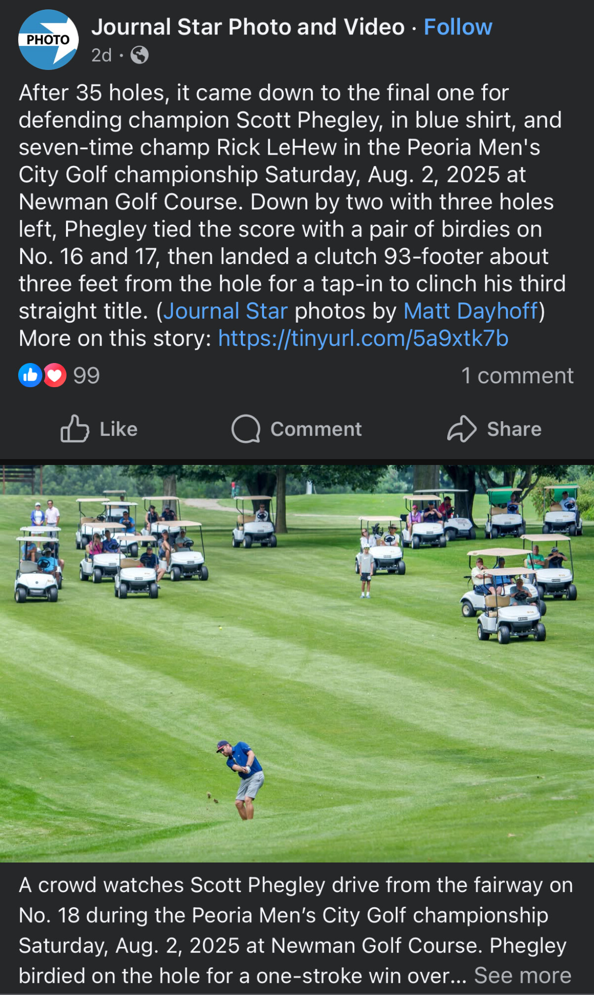 Things you can set your watch by: @phegs32 playing well in the Peoria City Championship. Good luck tomorrow, Scott.