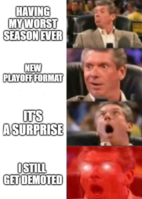I cannot begin to explain how excited I am for the new playoff format this year. Almost a guarantee that something wacky will happen and it blows up in our face.