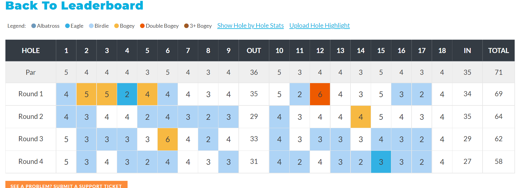 I am at about a toddler’s level of comprehension in Excel/Google Sheets, so you will have to forgive us for not having strokes gained, etc for this season. We have a couple folks more experienced in the spreadsheet world on the admin team and we hope to be able to build it back better than ever in the future, but as this is a bit of a rebuilding season we decided to just get it off the ground with a simple format.