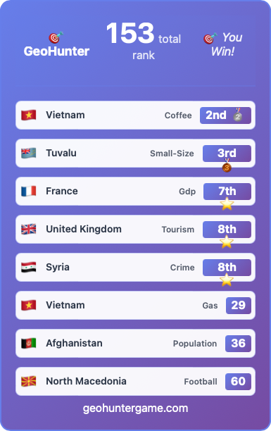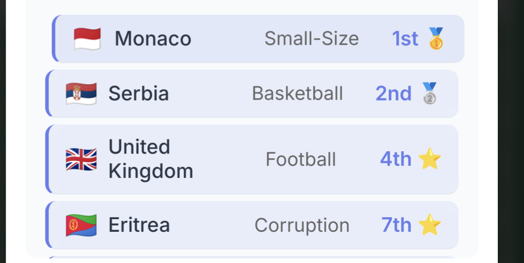 I don’t understand if some of them are like you want a country with the most crime or the least crime. I got DR Congo and was like “well, that’s a high crime neighborhood” and it was 100+