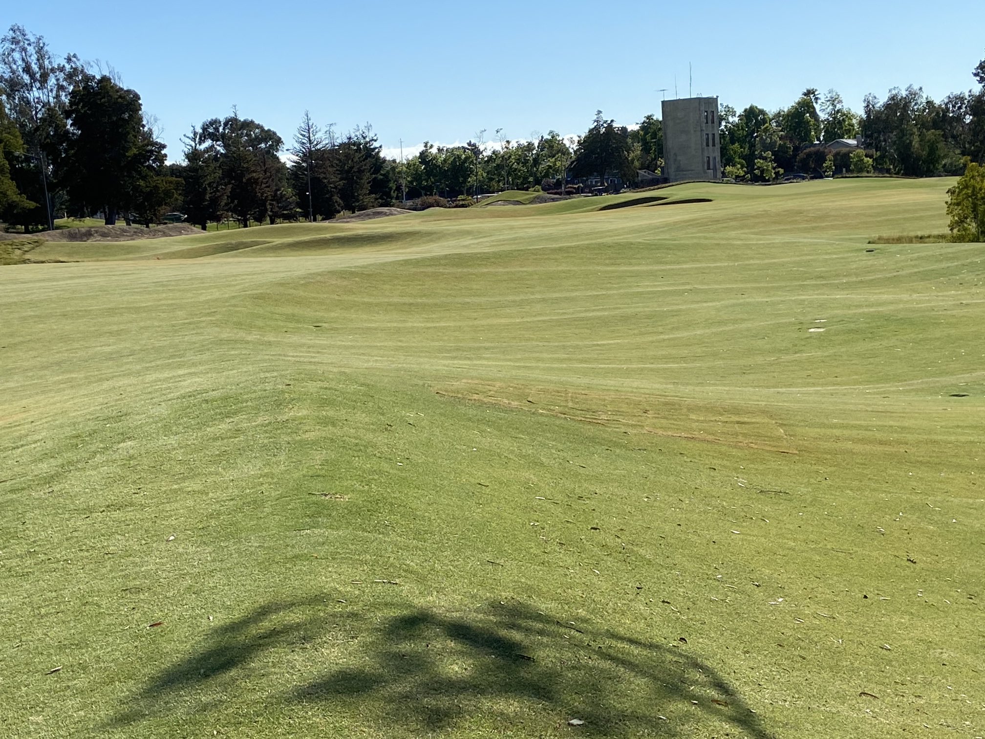 I just hit a shot fat in my brain, then thin, due to all those uneven lies.