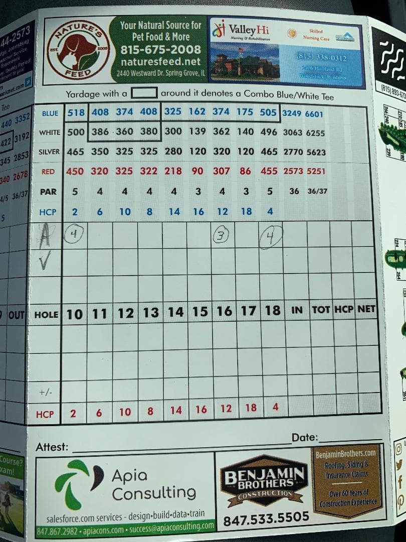 I was like normal, bogey-double-bogey, so all in all not bad. @Duff-Daddy hit the green in 2 on 10, the first time I’ve seen that done, and made an easy 2 putt bird(might have been par)and I think went par-par 11 and 12.