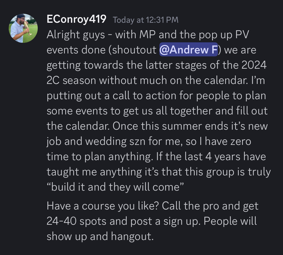 Shout out @andrewf for setting up golf yesterday.
