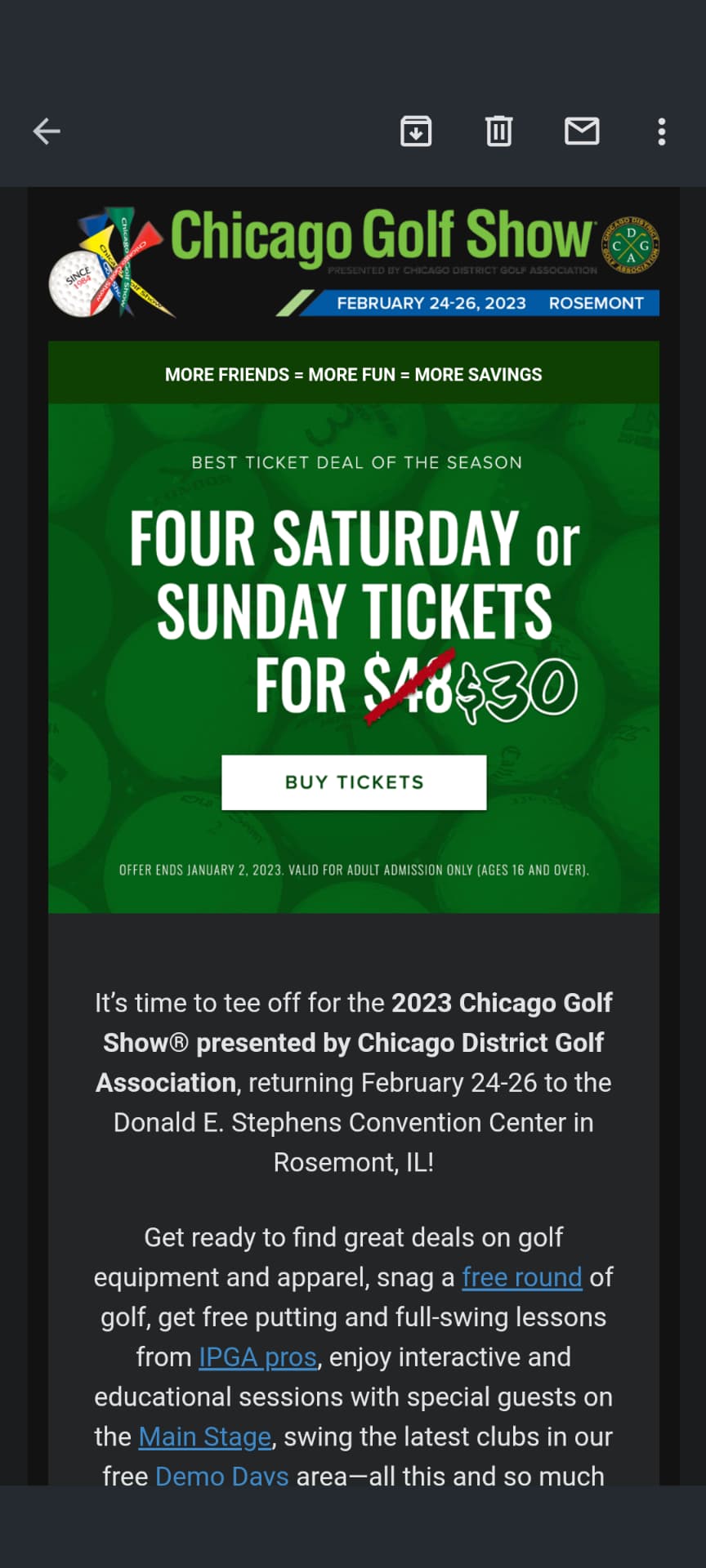 Was planning on going, but I don’t know 3 other people that would go with me to take advantage of tickets. I usually end up buying a couple dozen used Pro-V1s.