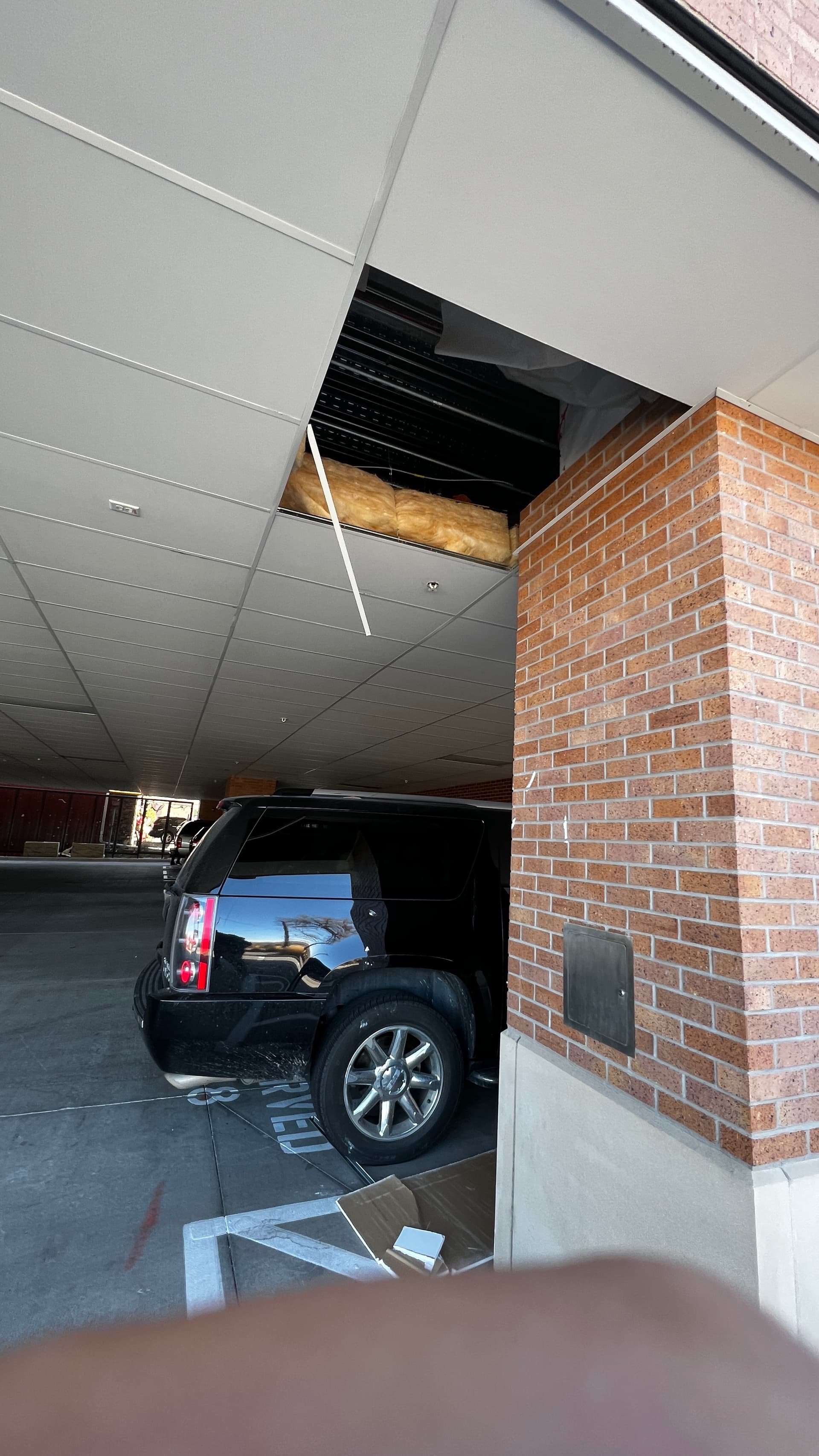 Related: who builds an outdoor parking structure with fucking drop-tile ceilings??