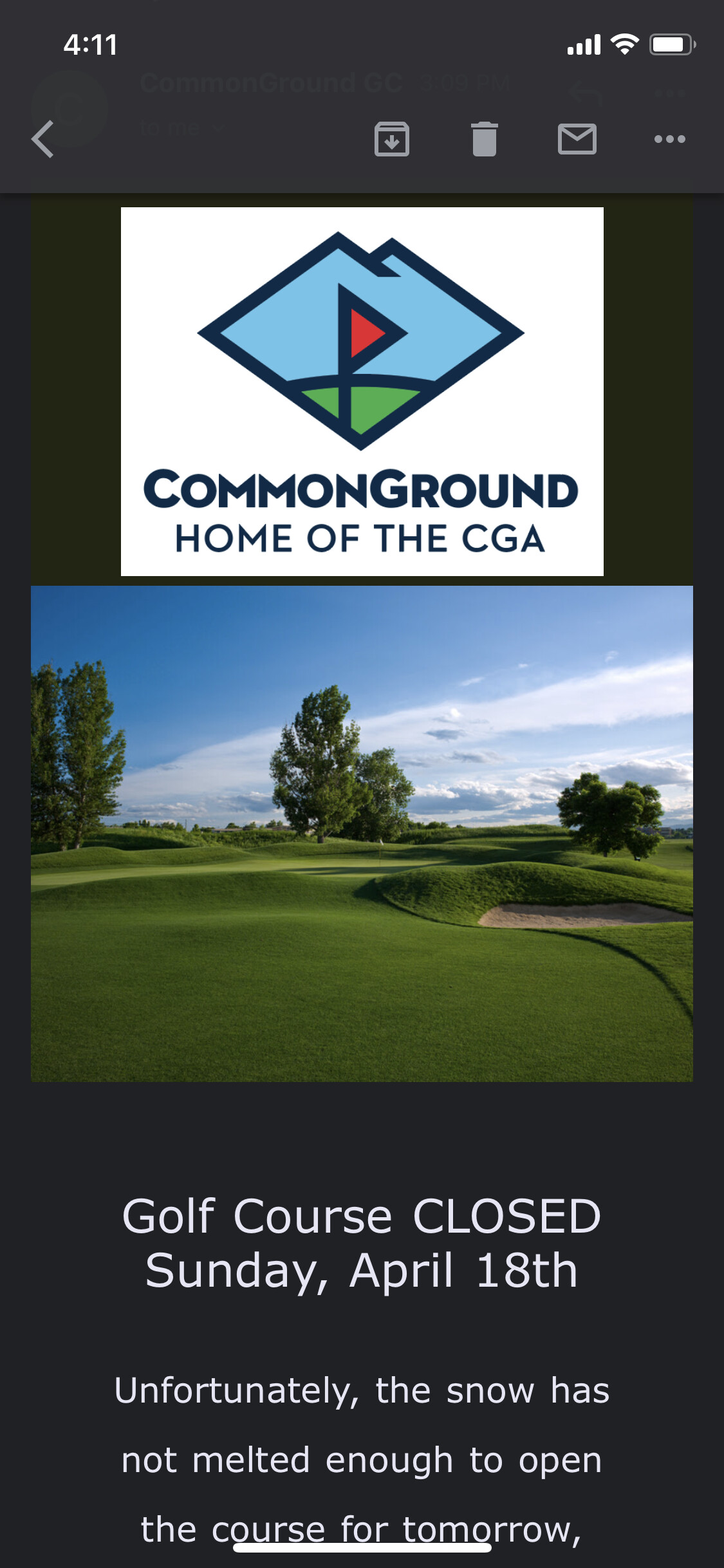 Unless we get some sun and melting this afternoon, I doubt it’s happening. I wouldn’t cancel on the off chance we can play, but it seems like we won’t be able to play.