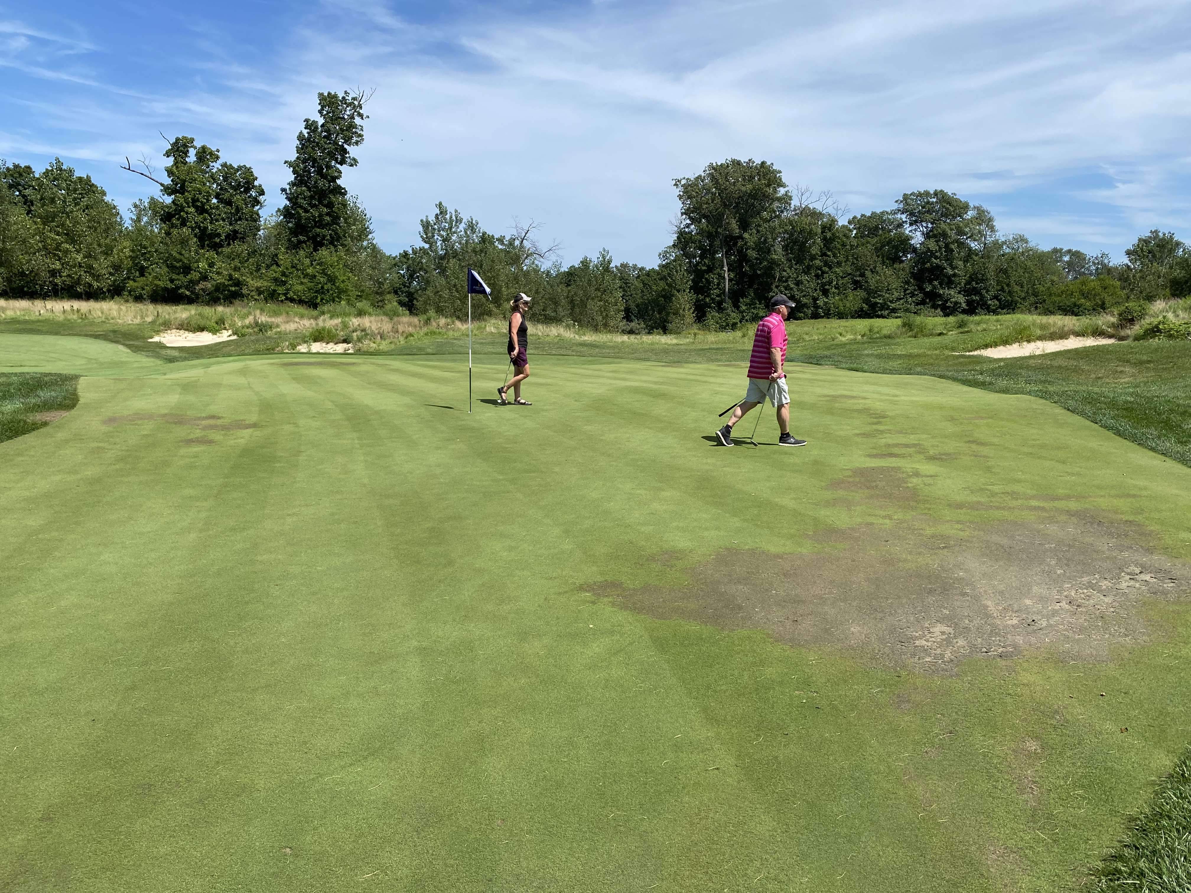 I’m very fine with brown bouncy grass. There was some completely bare patches on some slopes here and there but not anything that majorly affected how the course played. The only real critique I have of the course is the completely unnecessary amount of prairie grass in spots that dont make it much tougher for good golfers but leads to bad golfers losing a dozen balls per round. Lots of interesting holes and the greens were in good shape. Would definitely recommend for other people to play there.