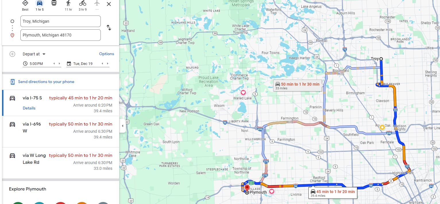I live in Huntington Woods (right next to Berkley, Royal Oak, Oak Park, and a little south of Clawson), and I would not consider a commute to Plymouth. I can get on 696 in under 60 seconds but I despise commuting and that drive just isn’t worth it to me. I696 is a mess and will be for a year or more, and the 696/275 junction will always be a traffic hellhole. There are other routes but you know your tolerance for commuting, traffic, and what times you’ll be doing it and how often better than anyone else.