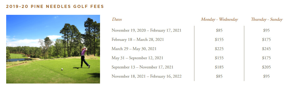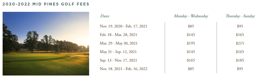 Anyone here have some insight on how Pine Needles and Mid Pines rates work? I was looking at the end of the month about a week ago and online the price was under 100$. Went back to book a day or 2 later and the same day was 175$ per person.
