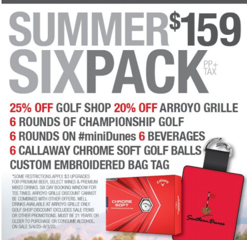 2 people purchase the six pack (guessing they’ll offer it again this year) and split up the rounds with the 5 other teammates. $27 a person, and everyone gets a beer and a golf ball haha.
