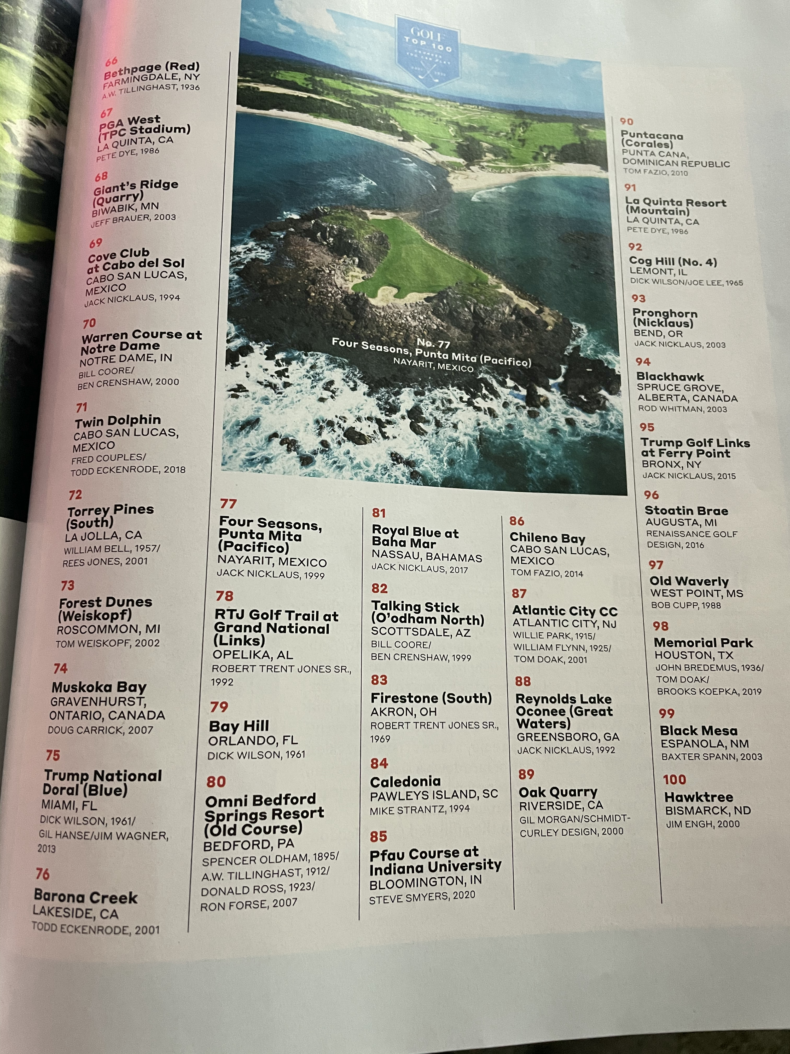 I understand the absurdity of trying to make a list like this but I must say i was a bit surprised to see the new GOLF top 100 courses you can play. Specifically Talking Stick (O’odham) coming in at 82. Don’t get me wrong, super fun track but I wouldn’t have pegged it for being a top 100 public course.