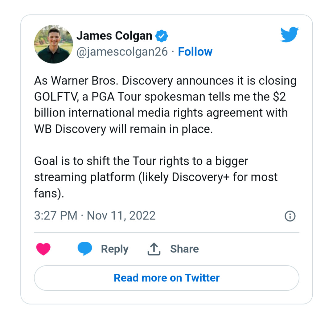 (Un?)Surprisingly there was not a lot of official coms on this from Discovery or GOLFTV.