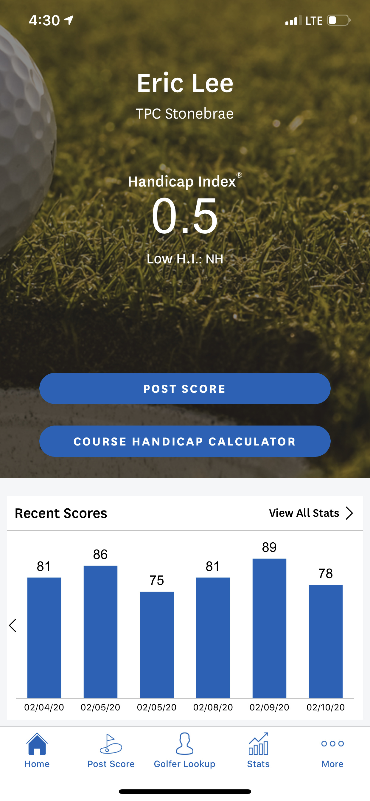 Unfortunately GHIN has me at .5 with 10 posted scores, @JBors as my witness knows i am not quite there yet.