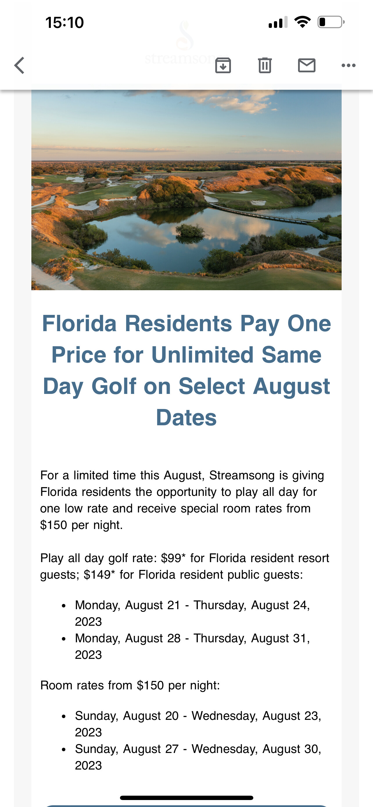 Anyone down for a streamsong red round on 6/15 at 8:30? QueenCityHive roost member hanging on lido key for the week trying to wedge some golf in