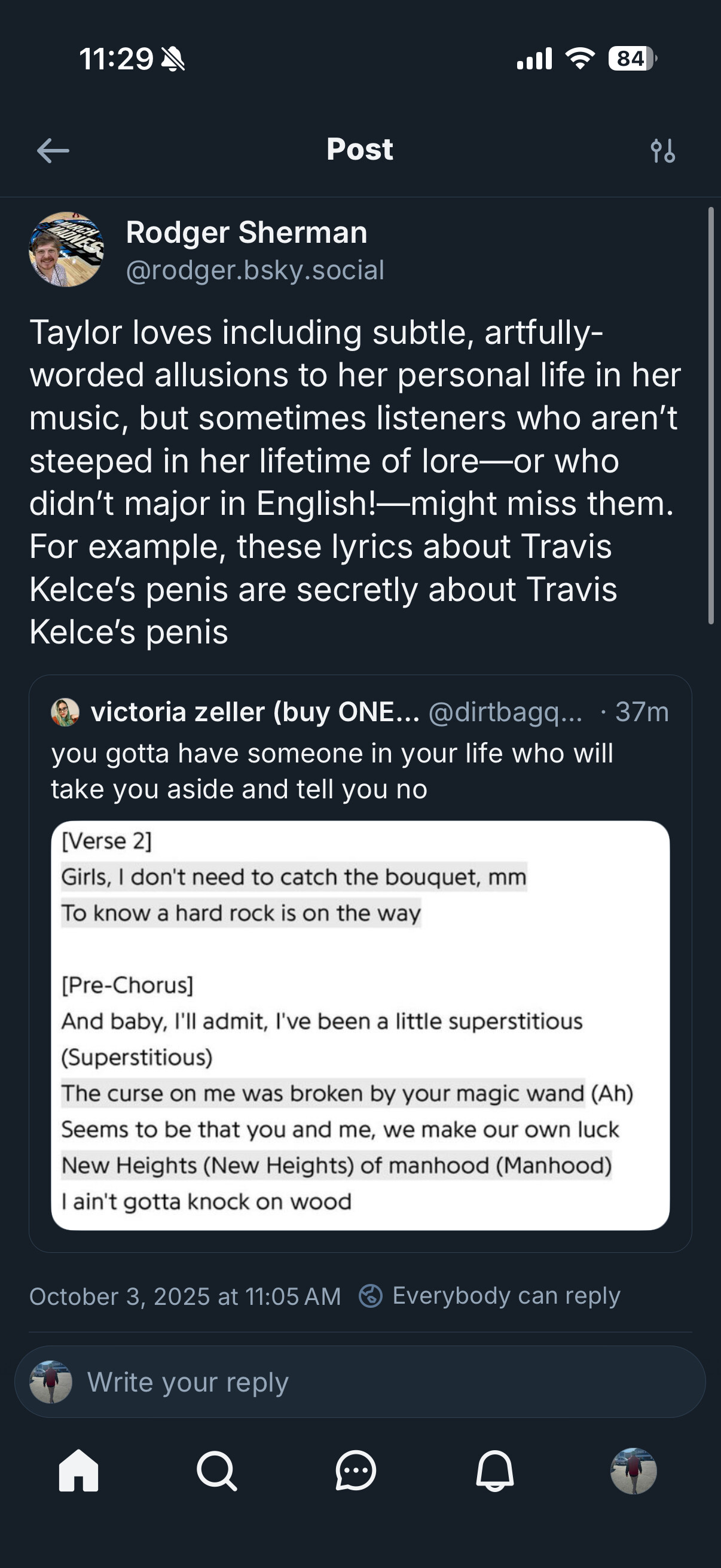 To steal one of dj pie’s pet phrases, Taylor being a huge dork is baked in. Sometimes she sounds like a teenager trying to be edgy when they aren’t. It’s part of the charm.
