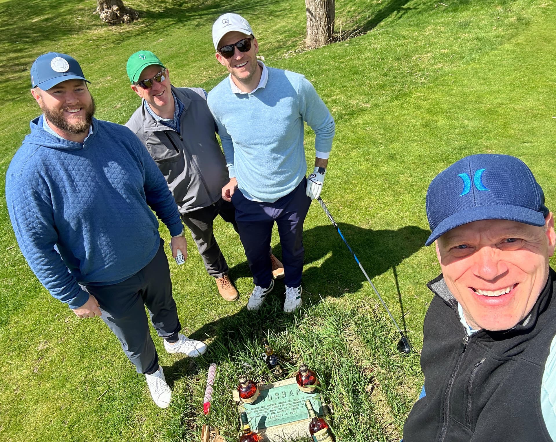 Game 1 @midwestgolfbum @wseitz26 @Ballgame and I got to be the first to raise a toast to our patron saint, Burban… And first crack at the tasty stuff.