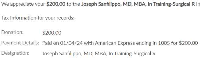 Fun fact, they do. I was also concerned because my Amex I used for the donation also ends in 1005 ![]()