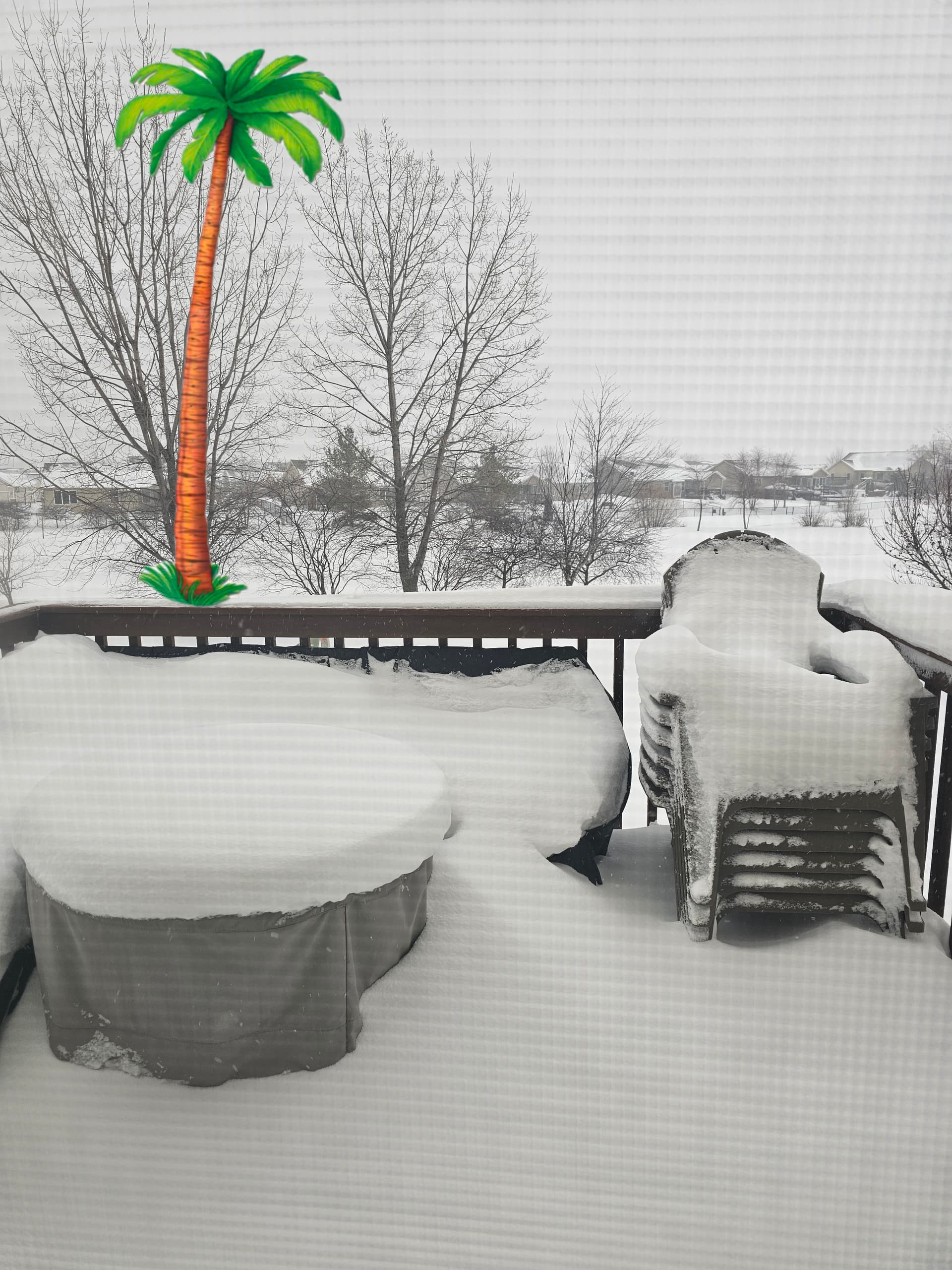 8 inches Tuesday, a snow squall Wednesday and another 6-10 inches today. My back hurts( shitty cheap snowblower cant handle anything over 3 inches). But here is some tropical flair.