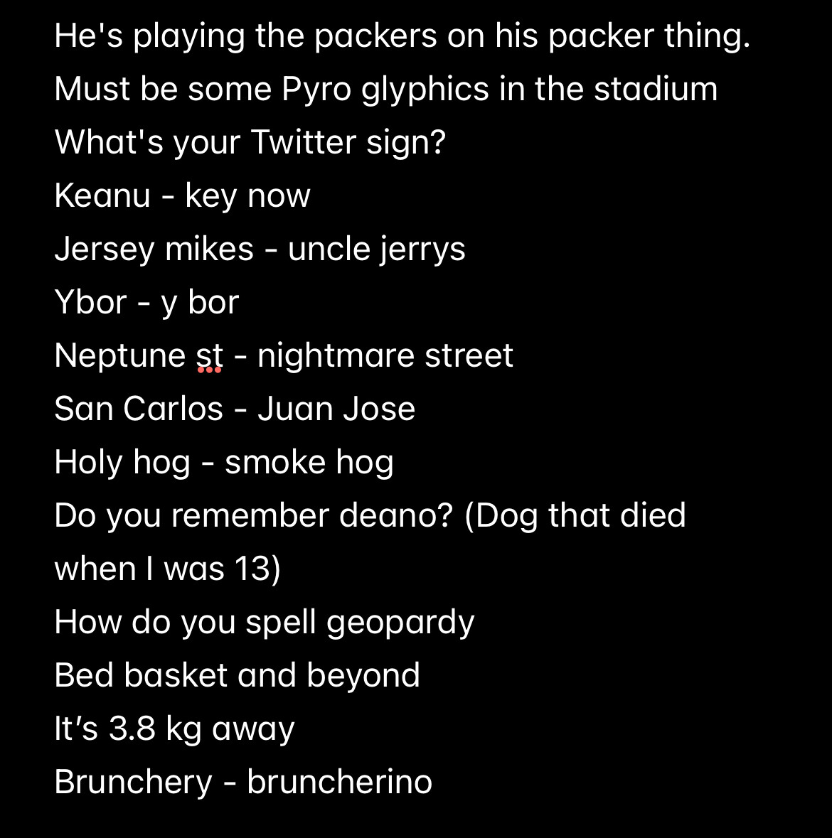 To this point I have a note with all the insane mispronunciations or just plain wrong things that my dad says