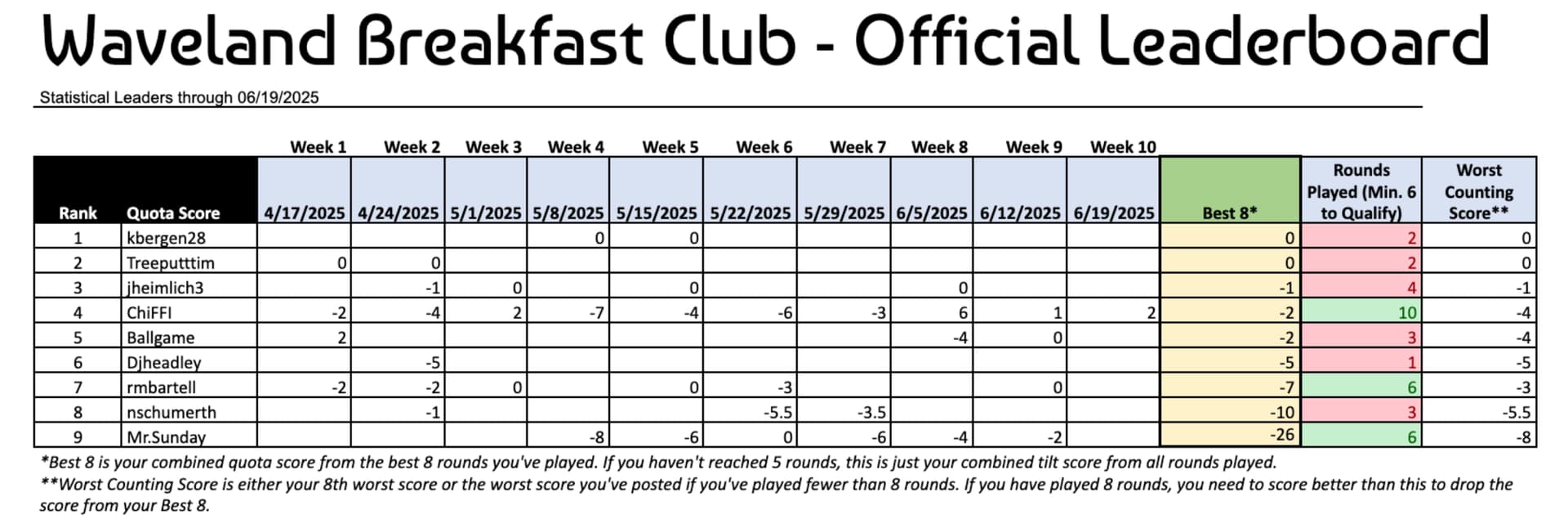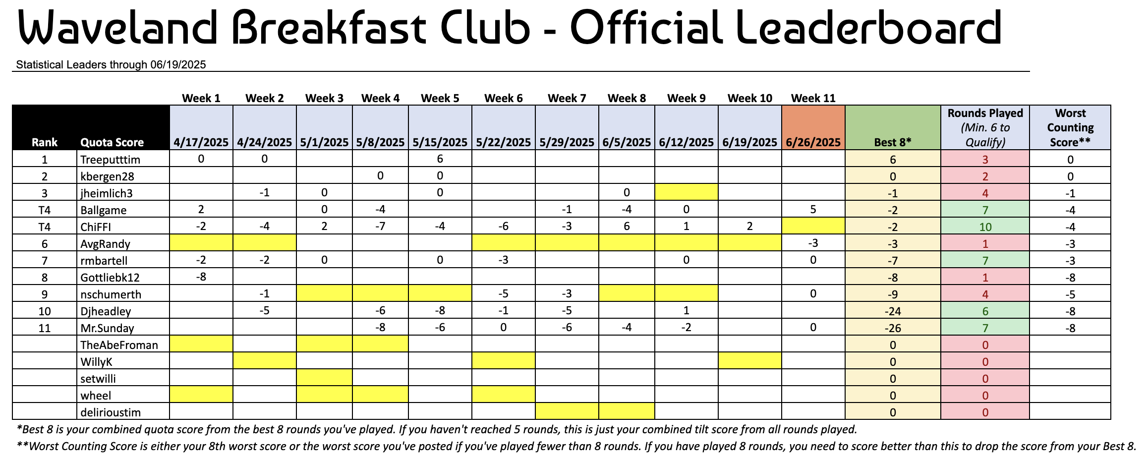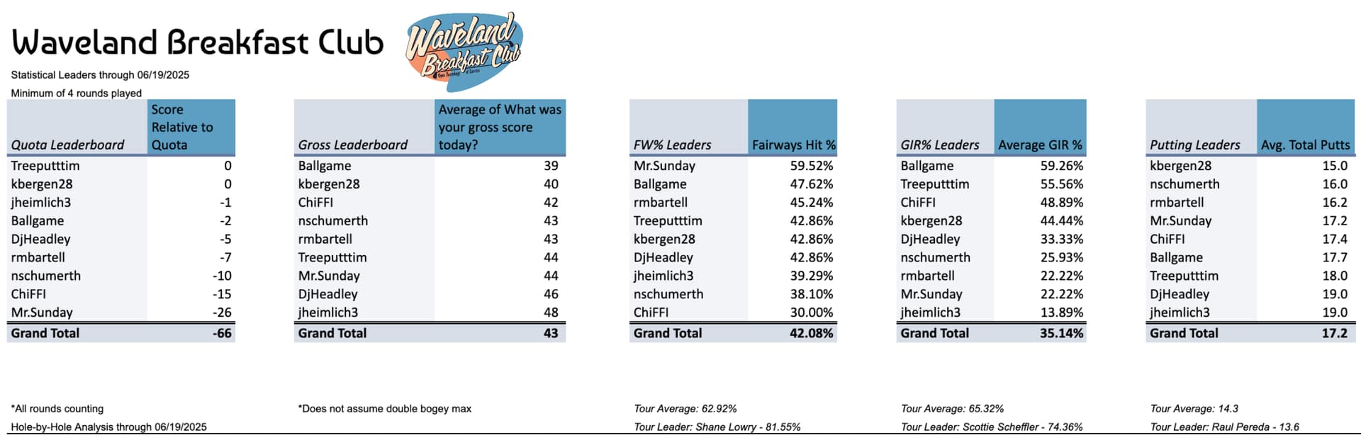 Quota & Birdie Leaders updated 6/27 @ 3:55PM