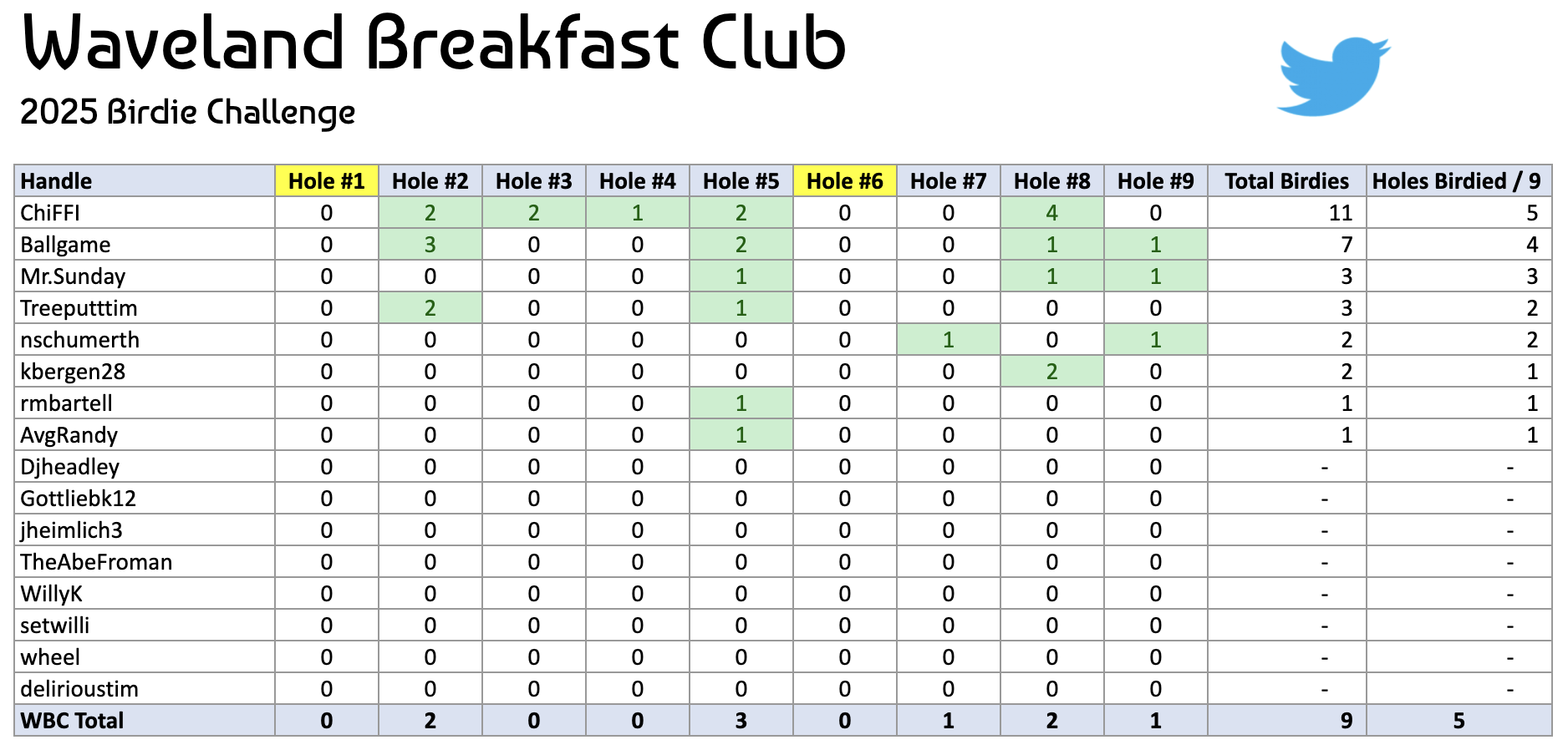 @djheadley & @ChiFFI are the ONLY guis to make birdie on each of our beloved Sydney Marowitz’s 9 holes. Well done, gentlemen. Well done ![]()