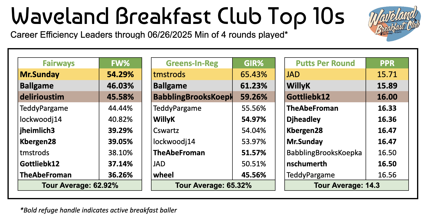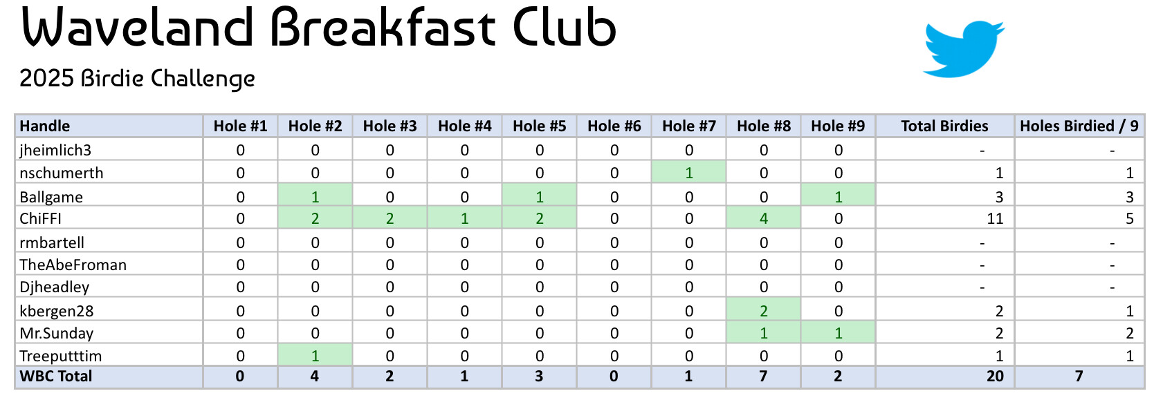Stats from the 2020 & 2021 seasons (unless tracked elsewhere) are not captured so the below table reflects birdies made by breakfast ballers all with at least 4 submitted rounds in WBCs Stat-Era (2022-present)