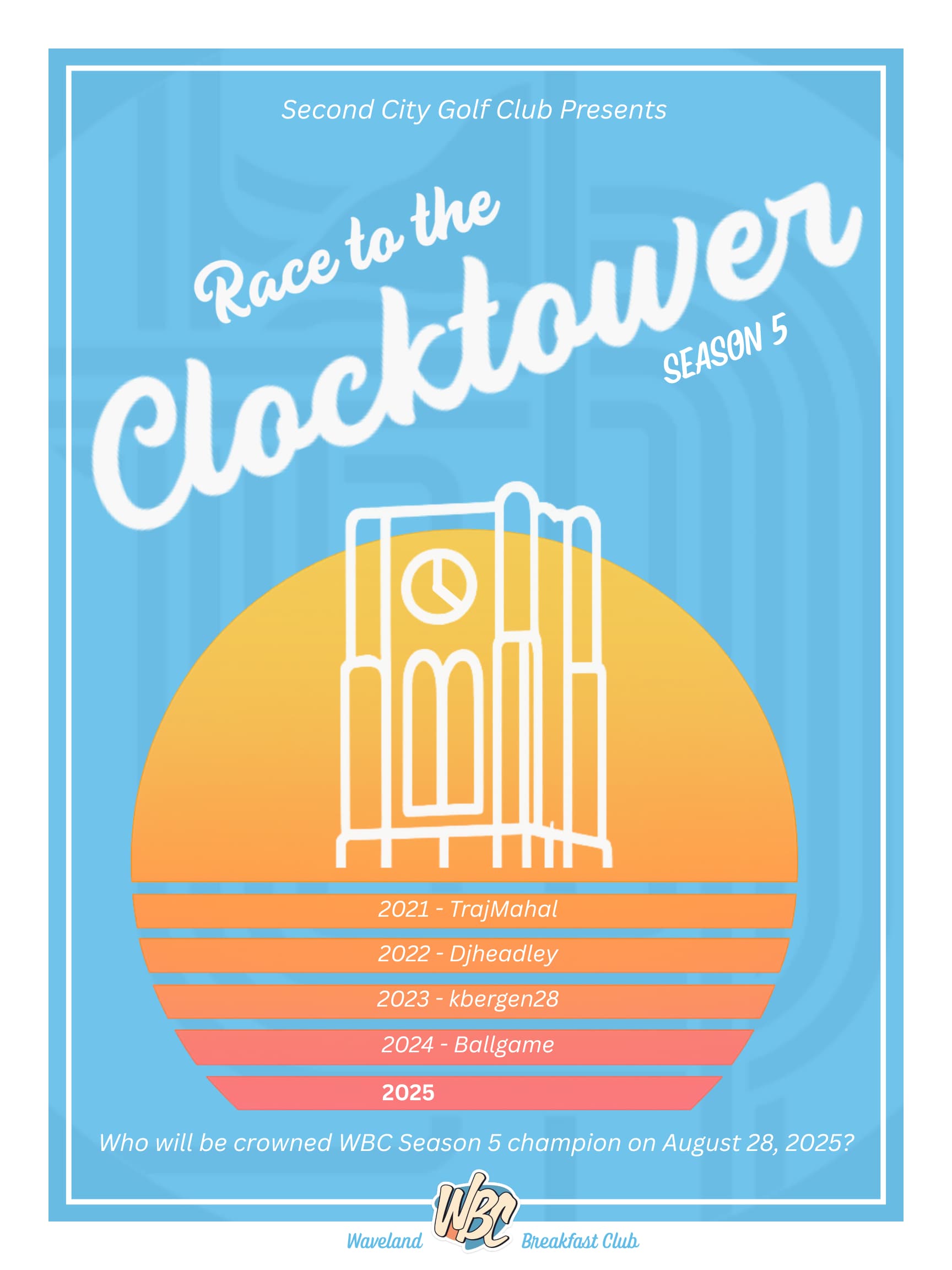 Thru 13 weeks, reigning champion @Ballgame (12) sit’s atop WBC’s Race to the Clocktower leaderboard with @jheimlich3 (9) & @ChiFFI (2) holding the #2 & #3 playoff spots respectively. @treeputttim (10), @Kbergen28 (3) & @TheAbeFroman (2) all have the points to contend - question is, can they post three more quality scores with only four weeks remaining?