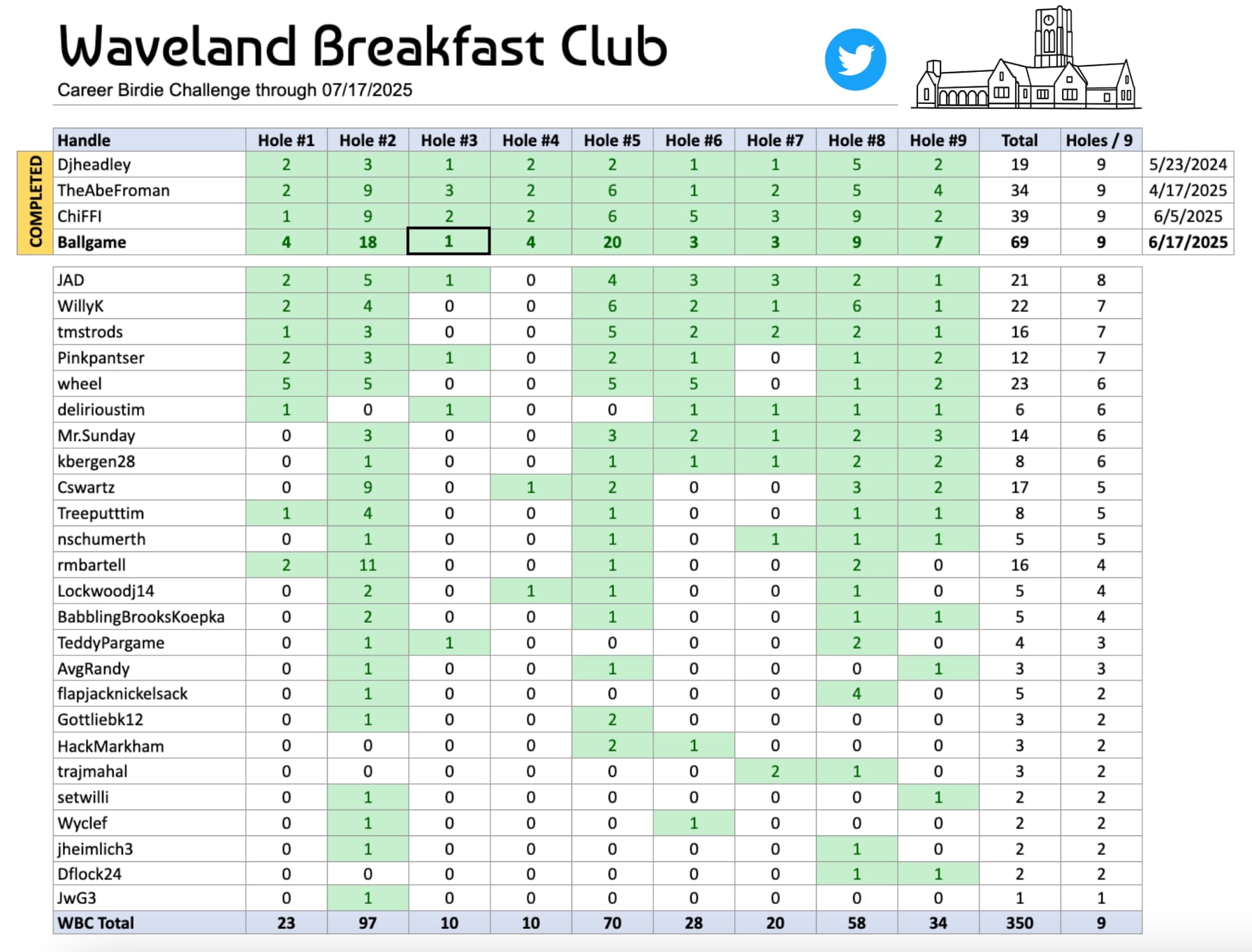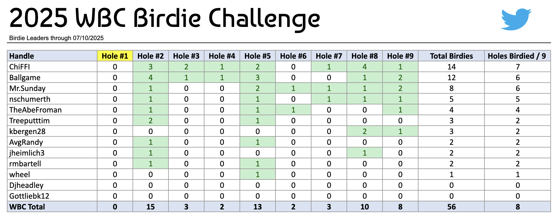 Both @AvgRandy & @Wheel logged a birdie en-route to carding their 6th WBC rounds Thursday to hit the qualifying standard. Which reminds me … I need to update the birdie list! (will get stats and birdies out tomorrow)