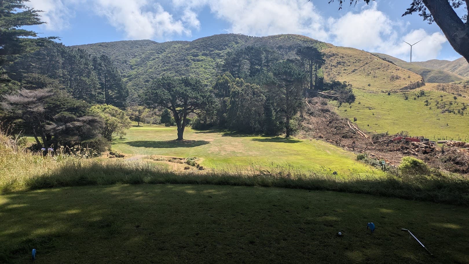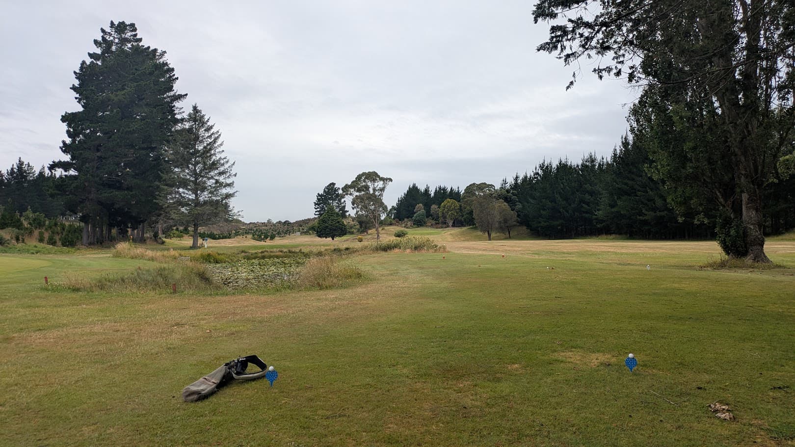 Pretty flat layout, nothing crazy, just played the back-9, since the front 9 had the ladies club evening game going. Conditions were FIRM and FAST, since it hadnât rained in a bit, and the wind had been up all week. The huge trees in NZ were wild. Made the scale feel very different for a course just simply lined with trees between each hole. Favorite hole was a par 5 that just had a huge tree blocking the green on the 2nd shot, to taunt you. Laying up to the right would be easy but clearly no fun. (âŚI could hear by ball crack off one of the branches directly in line with the pin from 180 yards away, found it, and chipped up for a 2 putt par)