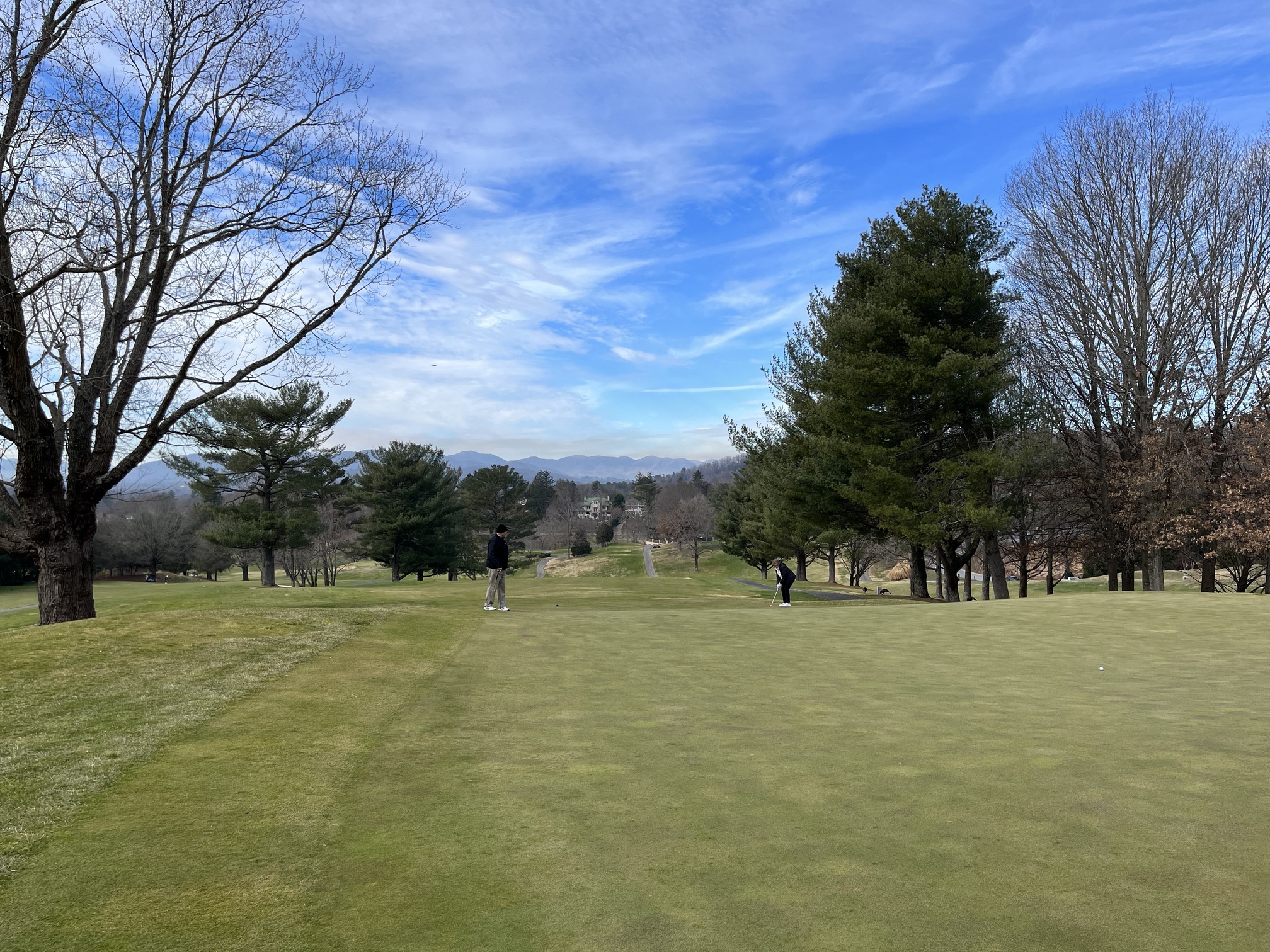 My parents and I played 9 at the Grove Park Inn this morning. Mom turned 70 this month, so this was my birthday gift to her. The Grove Park isn’t exactly beloved around here, but I really like it. It’s fun, open, and the back nine has some great views. It’s a classic Donnie.