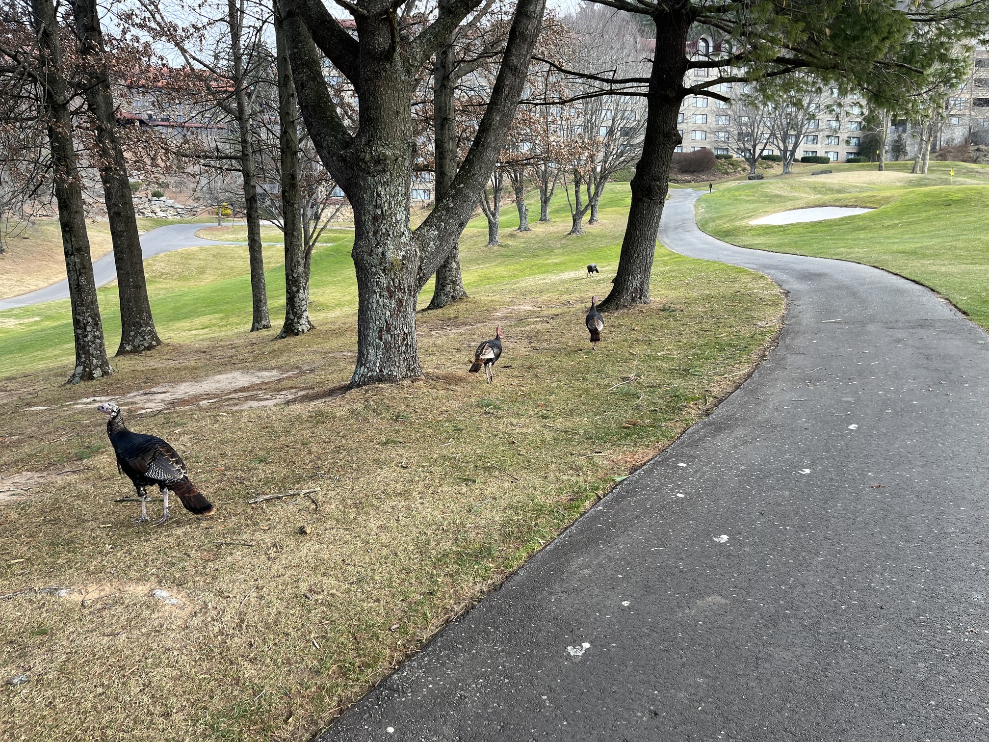 Shot of the day was on 17. It’s a short par 3. 101 from the front tees. Mom hit driver and it rolled up to about 3 feet. Sadly, she didn’t cash in. The turkeys were the only birds to be found.