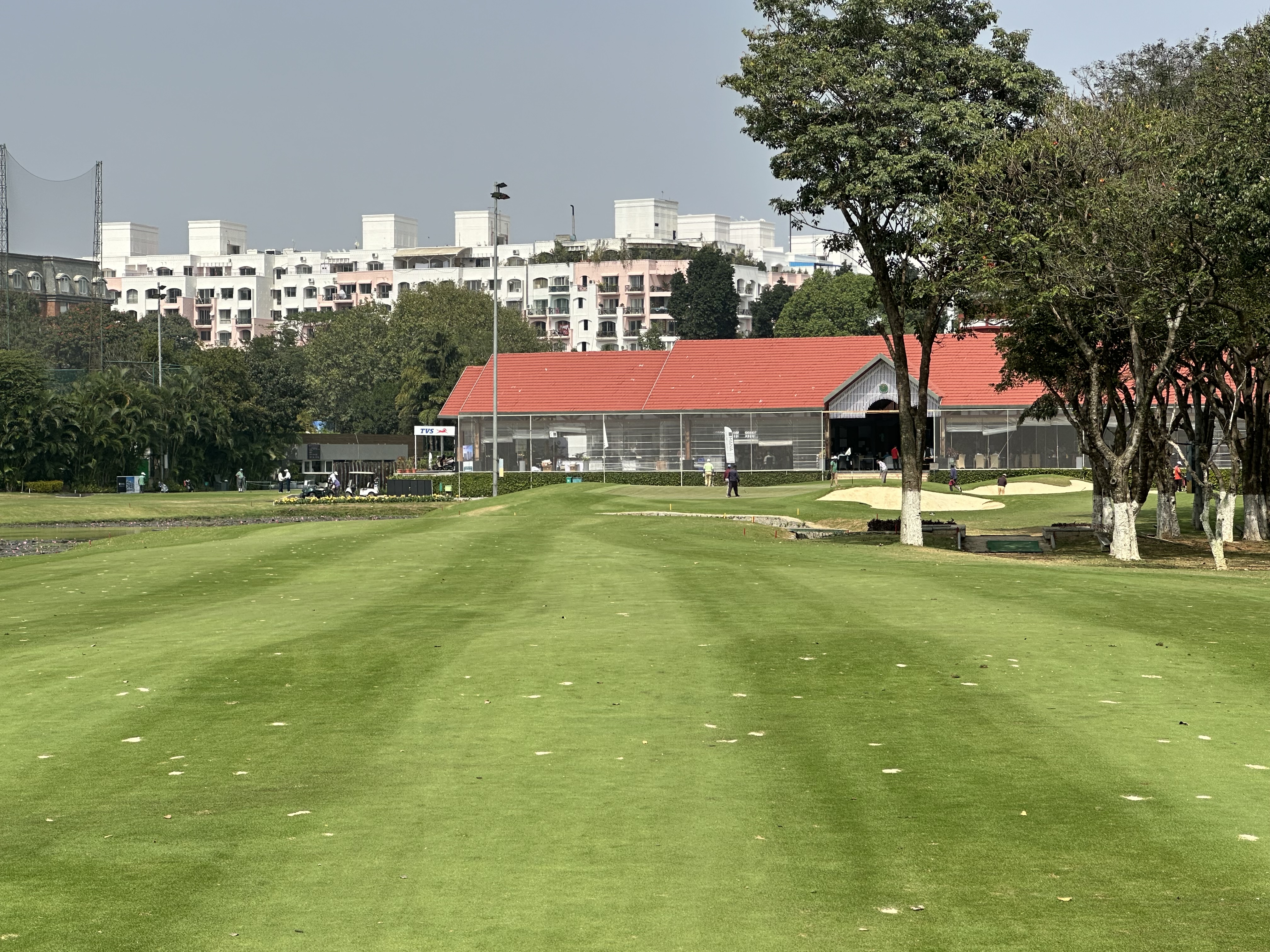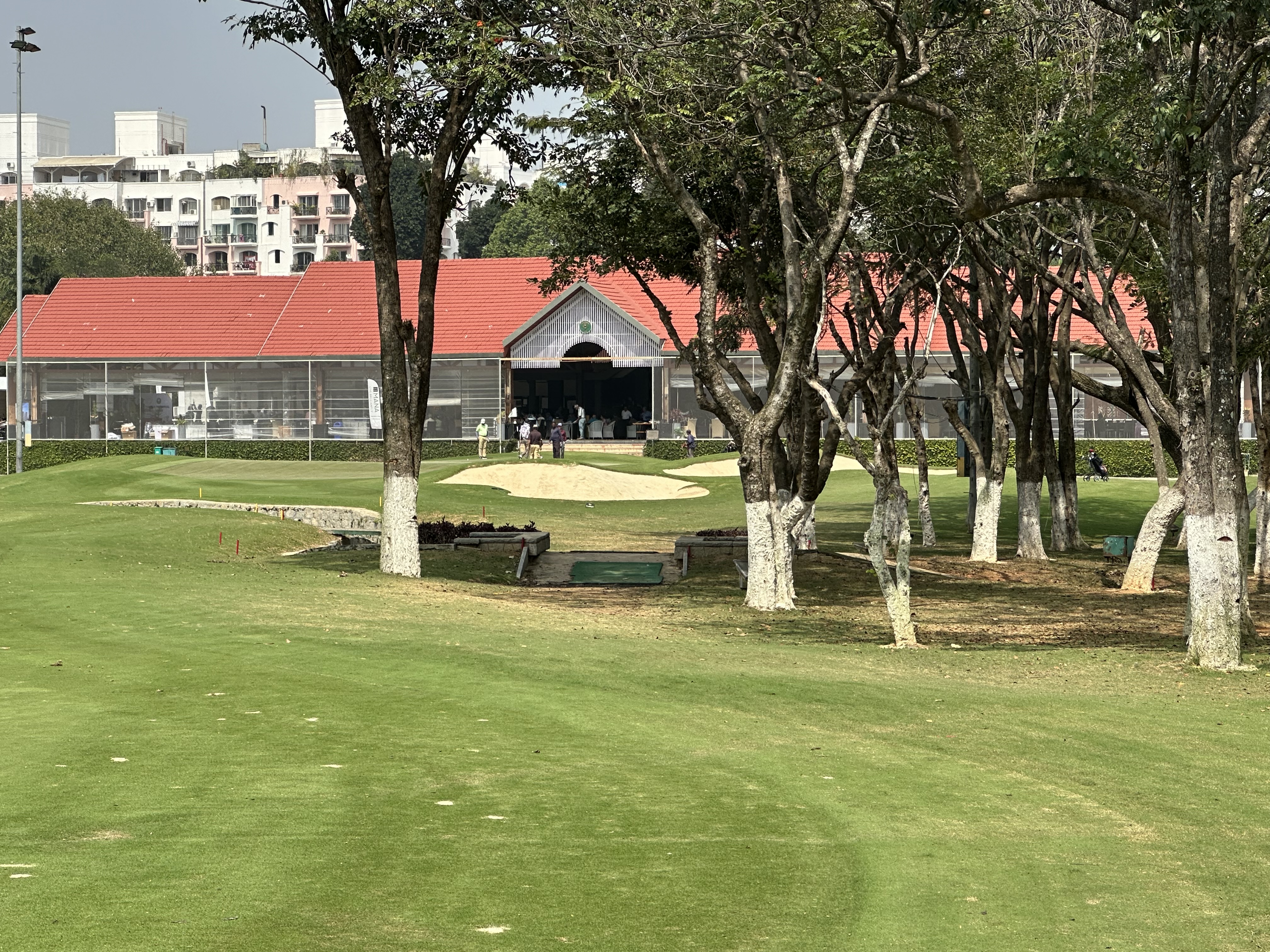 Founded 1973, 150 year lease on government land. The association club golf course is the home course of Indian LPGA star Aditi Ashok. I found it to be a fun challenge. It is a walkable course, and almost everyone was walking it. I took a caddie. I played the one up tees again at 6800, tips at 7200. Greens were medium sized, not huge. There is basically only first cut rough on the whole course. The only way you lose a ball is hitting it into one of the many water hazards, or OB on a hole on the property boundary. Some of the challenge comes from the many trees, which have been pruned to have mainly the trunks in play, making for interesting recovery shots with wild drives. With 10 rounds, I think I’d play 8 here over 2 at the golfshire, thats a combo of the course and the vibe. The downside is that it was a slow round, and the course is busy busy busy.