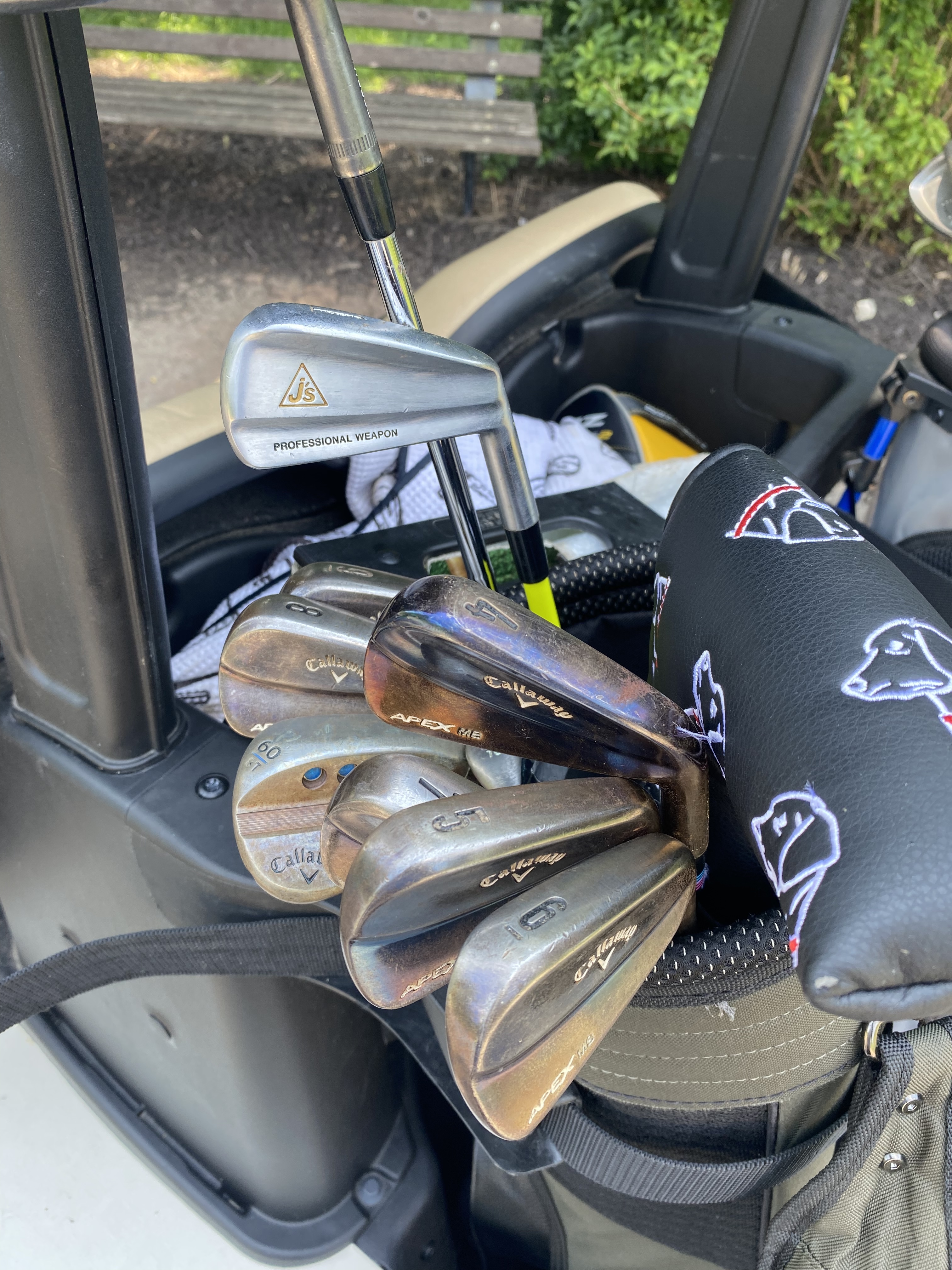 Also, got paired up with an (unknowing) Bladey Eighty Sherpa, my man David. David is ~60 and rolled up in pants (it was 86 in KC), brown wingtips, and a set of 2-PW Mizuno MP-14s. We. Like. That. I asked him about the blades (of course) and he proceeded to evangelize about how they make him swing within himself and how he feels more connected to the game with them, recently he had felt that his cavity backs were making the game uninteresting. Holy shit, he’s in the cult club and doesn’t even know it. His whole vibe was aspirational. He peeled off after 9 (probably why my game was shook) so I didn’t get to fully explain the YOTB but I’m sure he would have dug it.